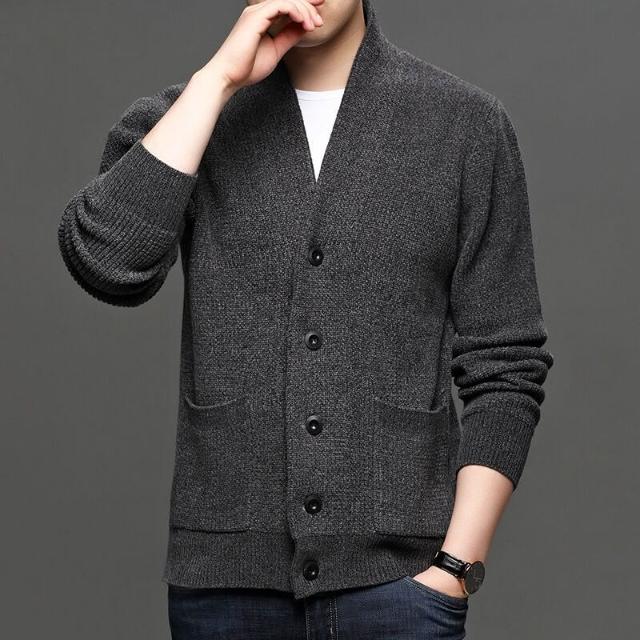 簡優 秋冬裝新品中年男式針織毛衣休閑薄款單排扣寬松針織開衫雪尼外套
