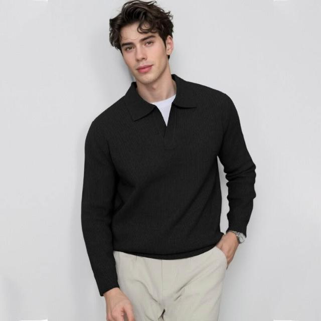 簡優 男士秋冬服裝商務V領針織毛衣老錢風格翻領羊毛衫男輕風休閑百搭