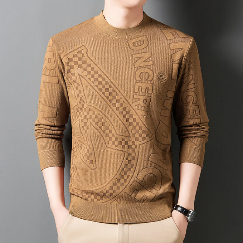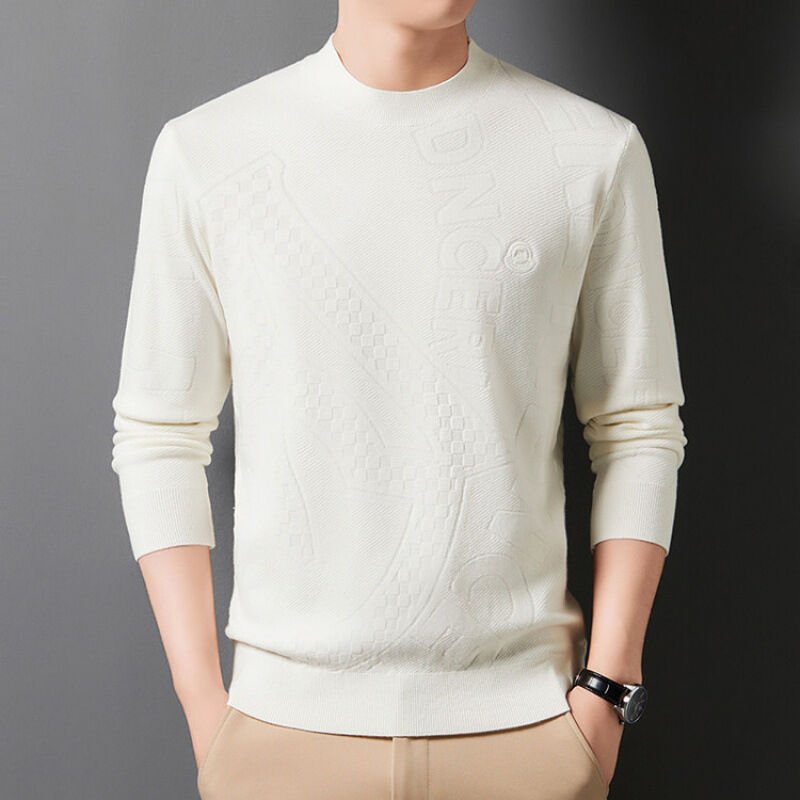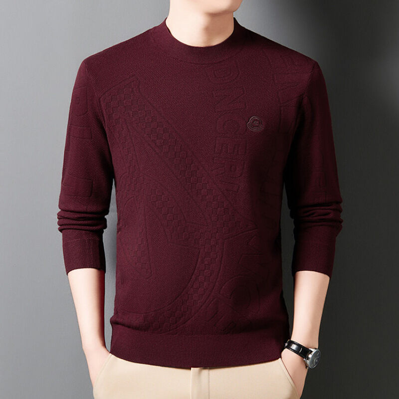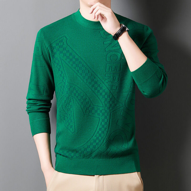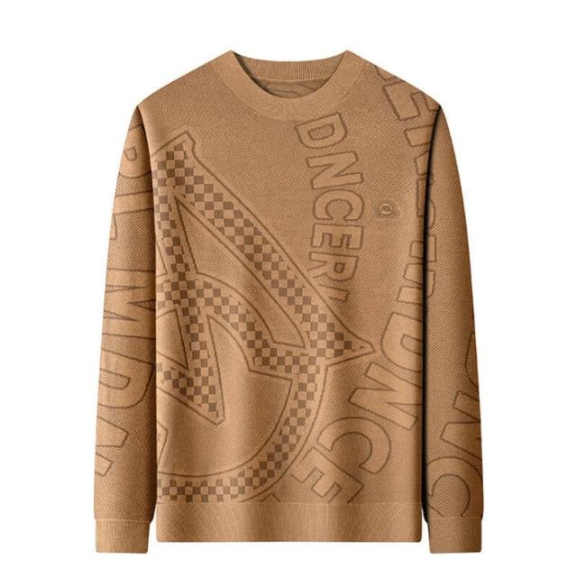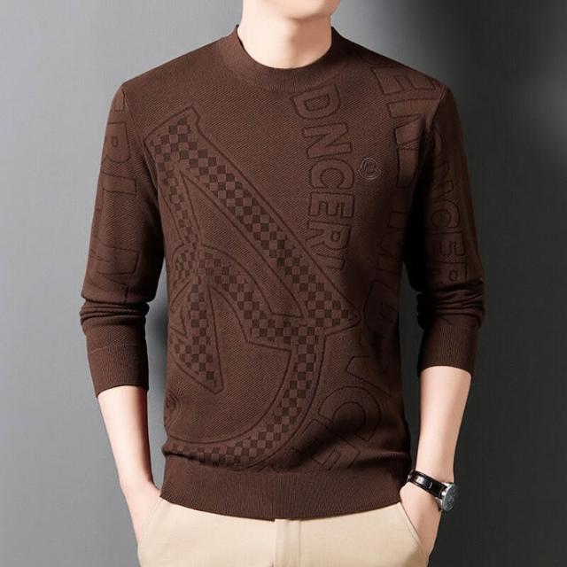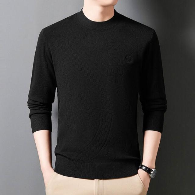 簡優 春季新款長袖t恤男中年圓領針織打底衫寬松爸爸裝薄款針織衫
