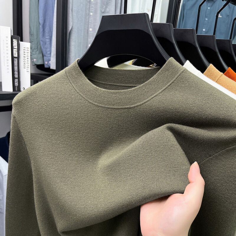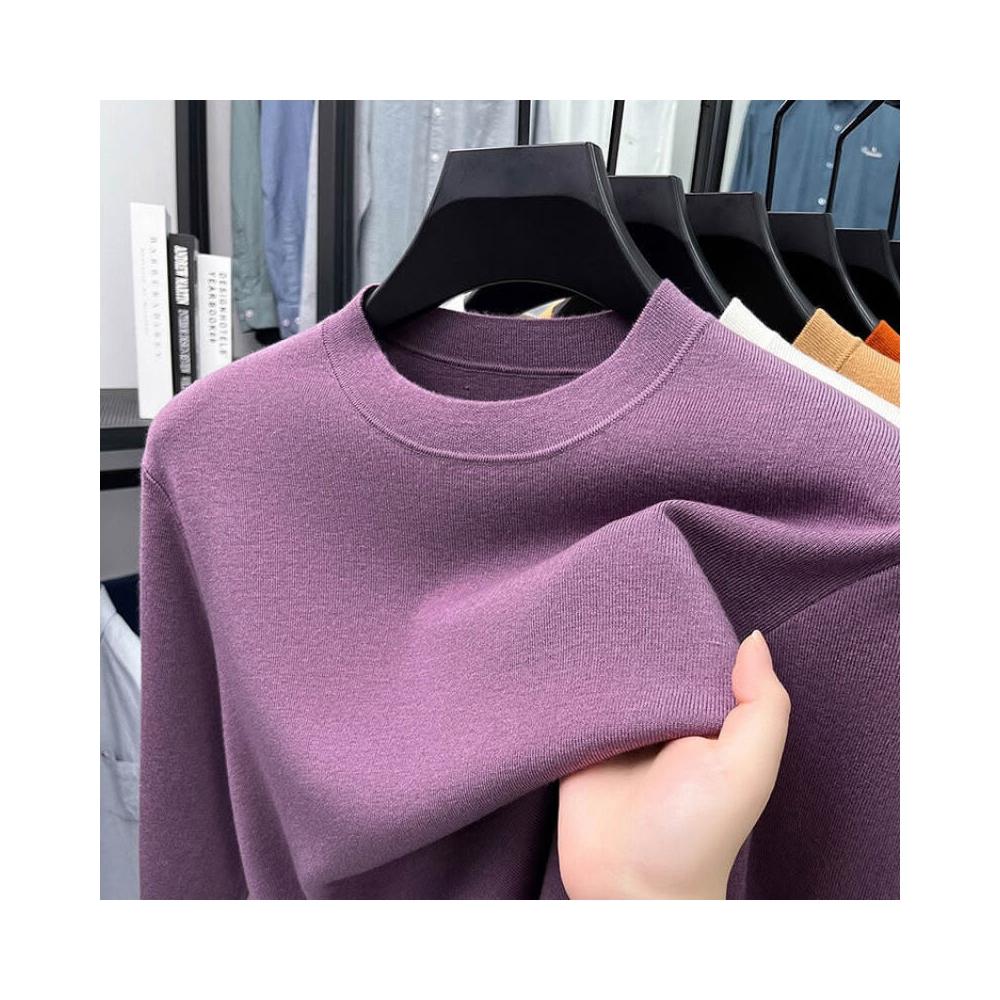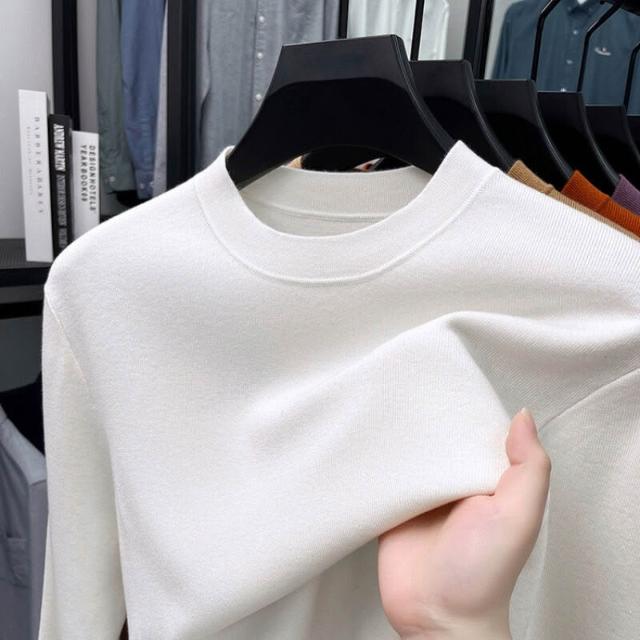 簡優 秋冬季薄款含羊毛針織打底衫男長袖t恤中年爸爸毛衣打底