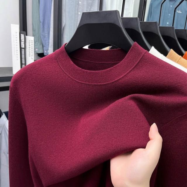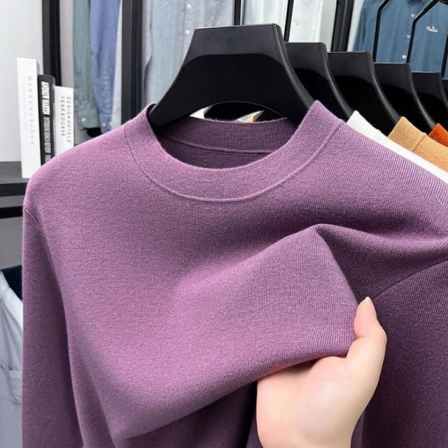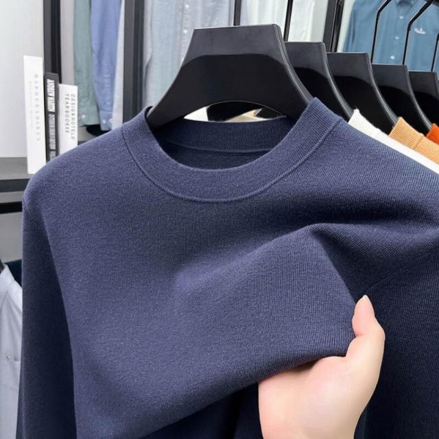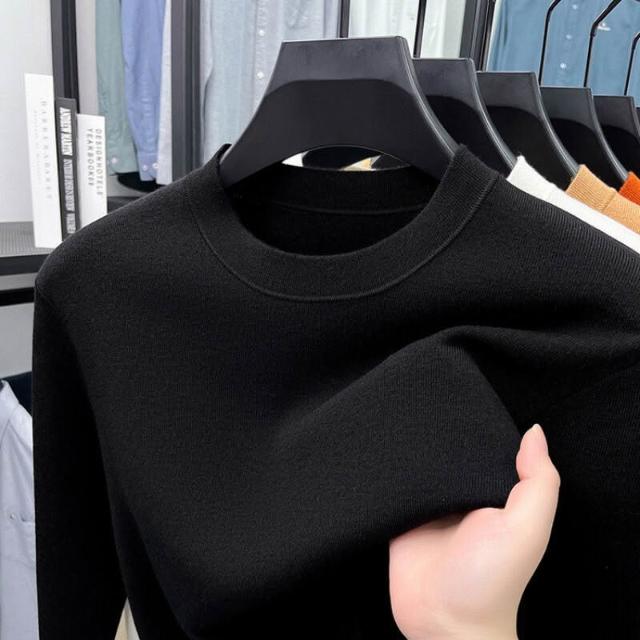 簡優 秋冬季薄款含羊毛針織打底衫男長袖t恤中年爸爸毛衣打底