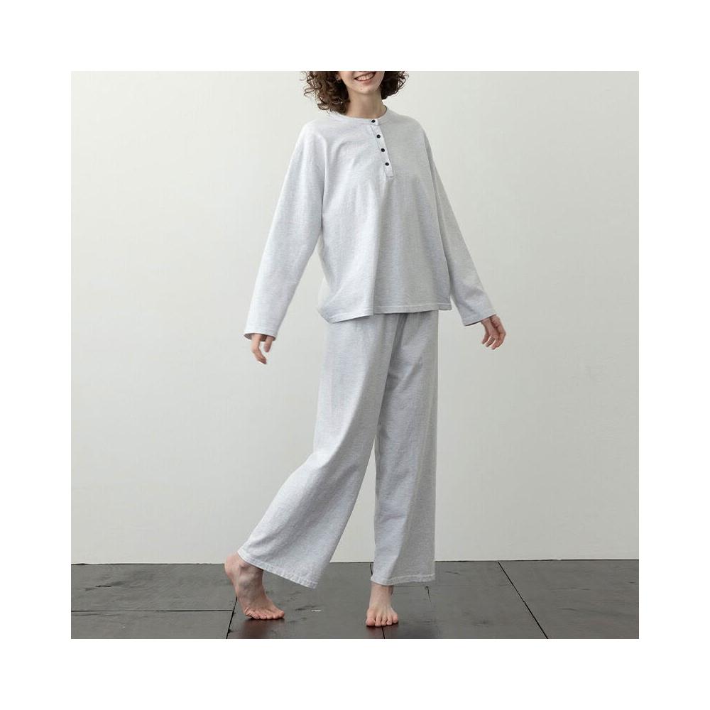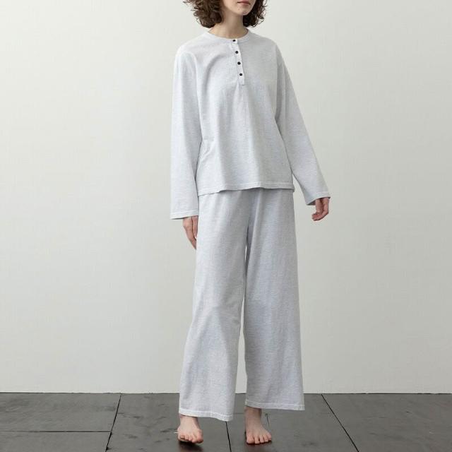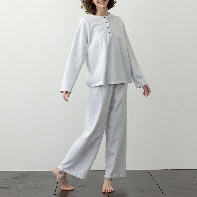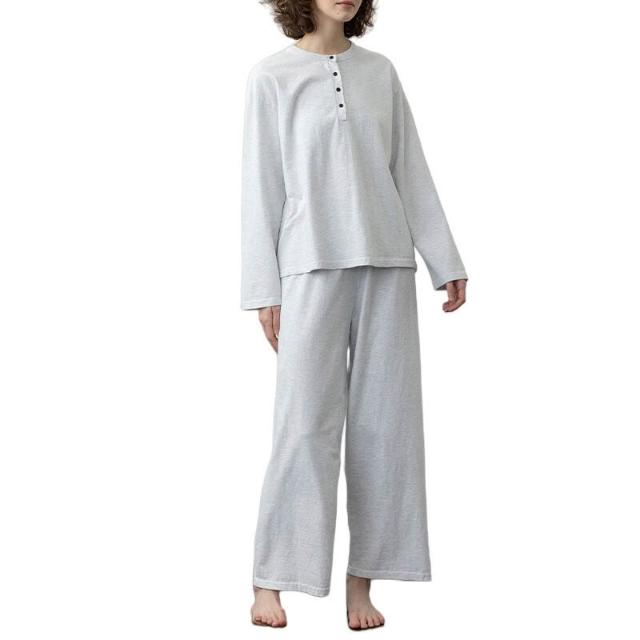 簡優 純棉家居服女秋季新款簡約純色套裝撞色紐扣長袖睡衣兩件套可外穿