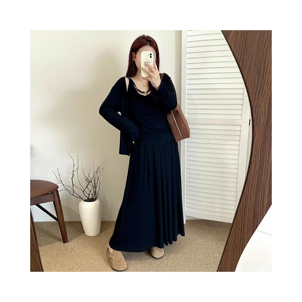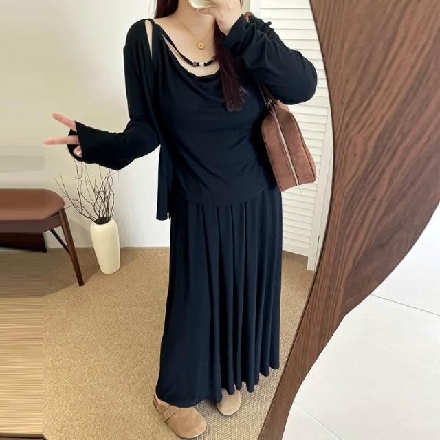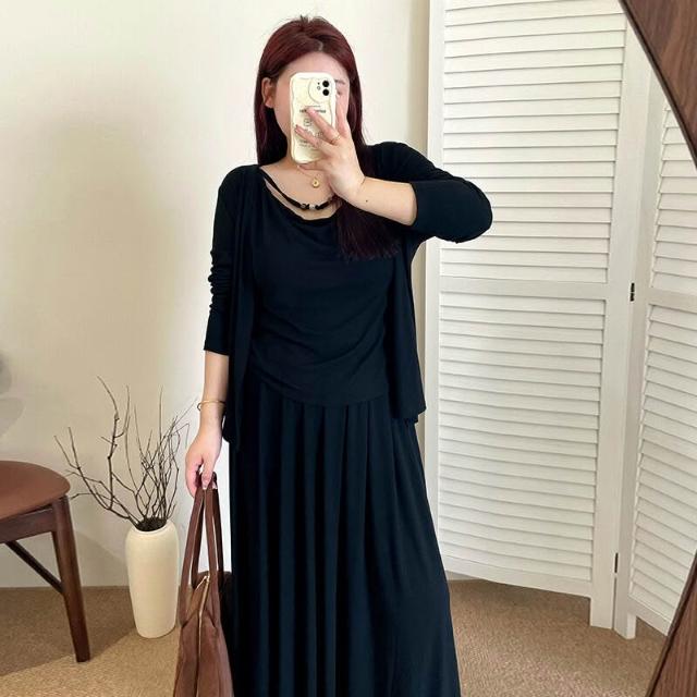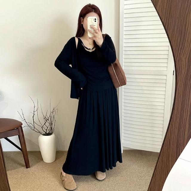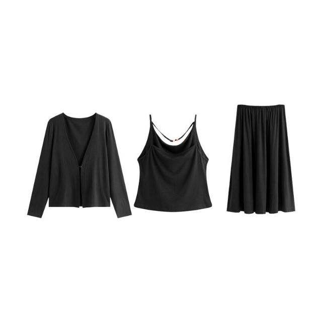 簡優 大碼寬松慵懶針織套裝2026春胖mm內搭吊帶女開衫半裙三件套NT1258