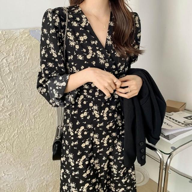 簡優 法式小個子碎花連衣裙子梨形身材高級感2026早春新款長裙女裝