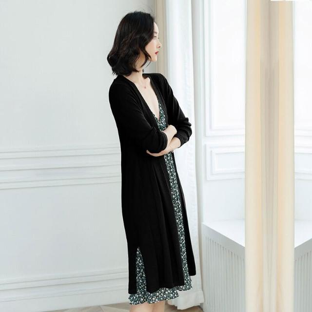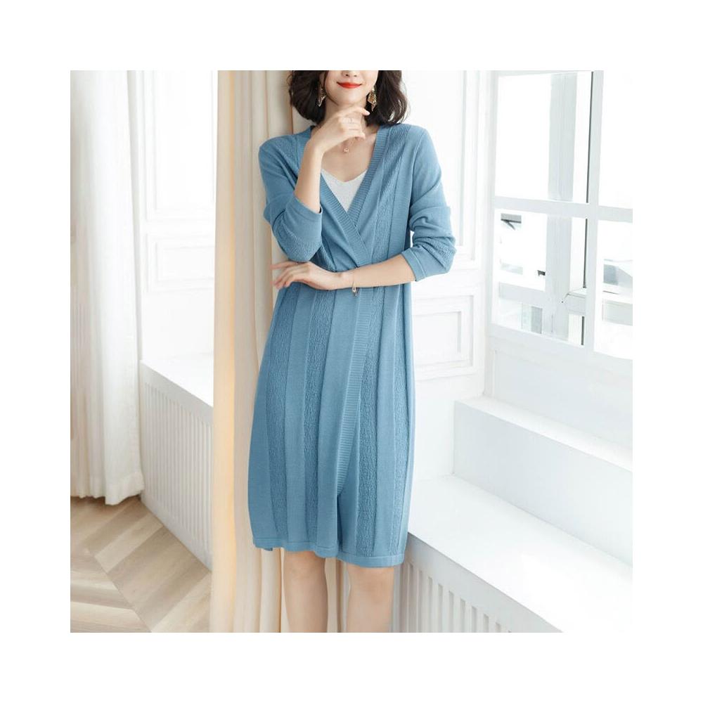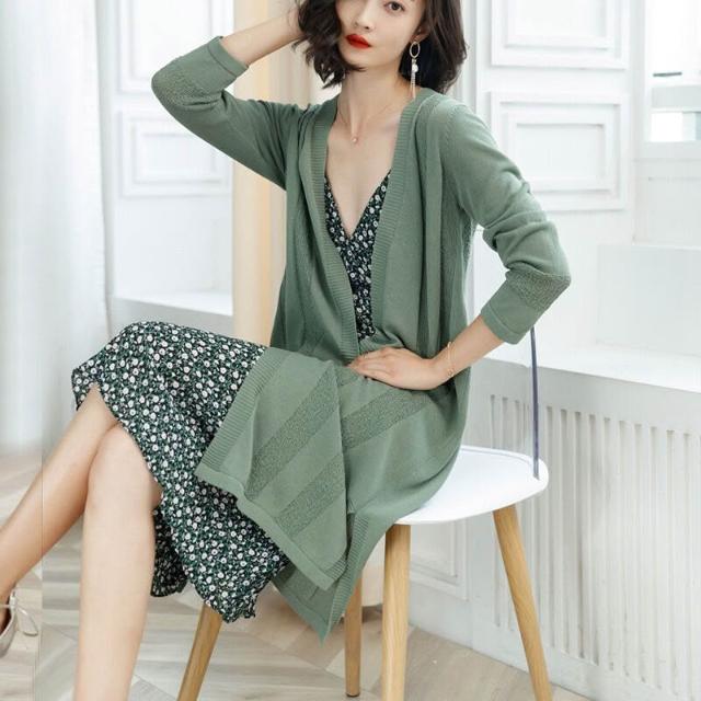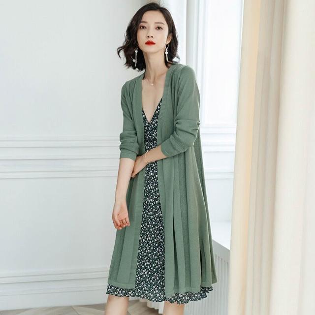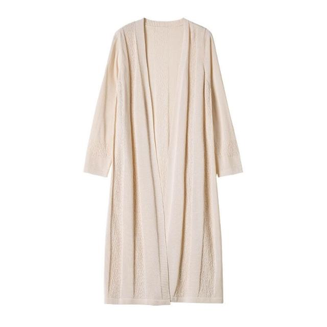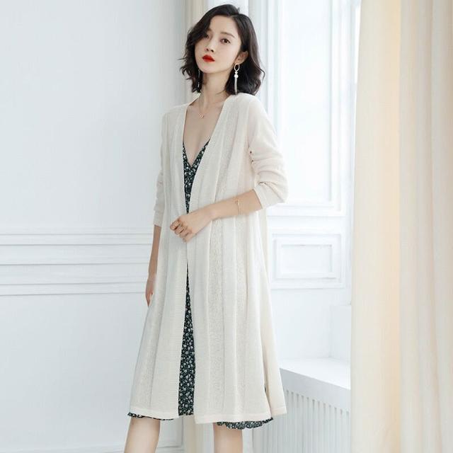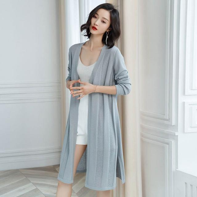 簡優 時尚設計感冰絲針織開衫外套女 春夏新款薄款防曬衣中長上衣