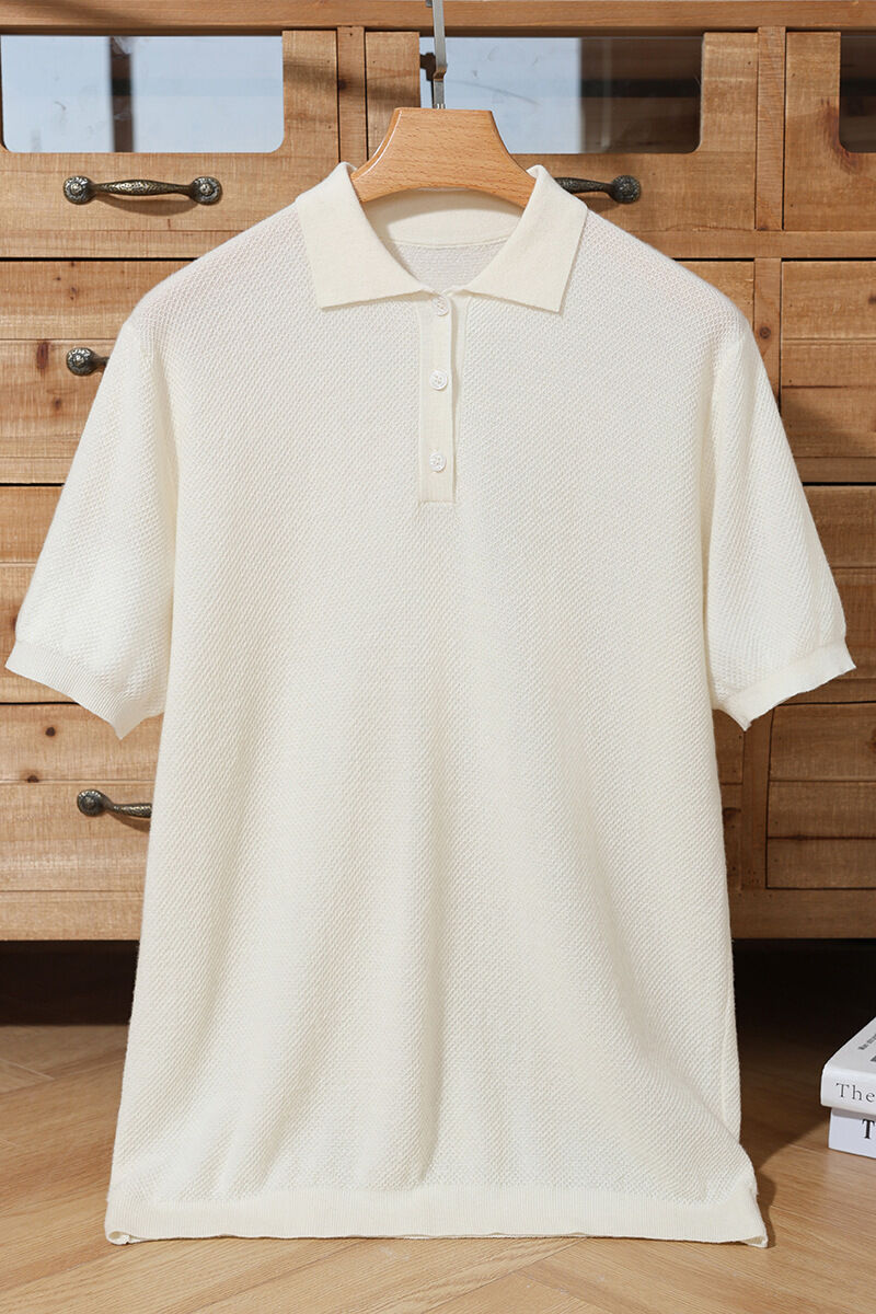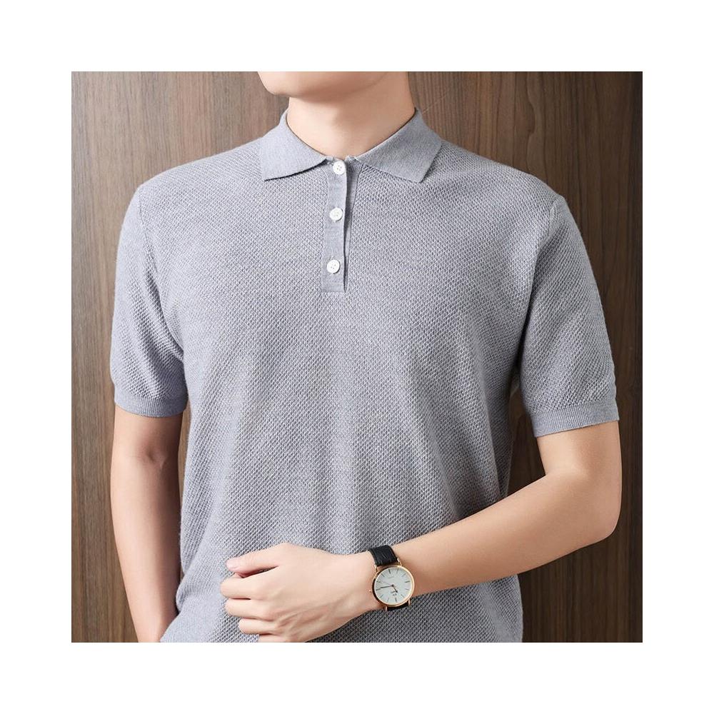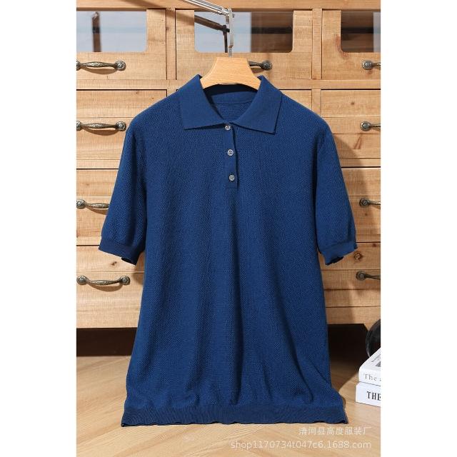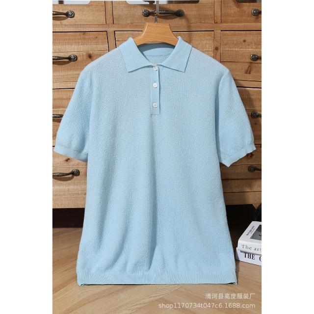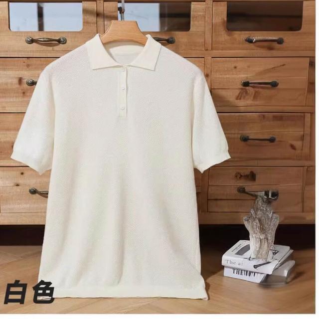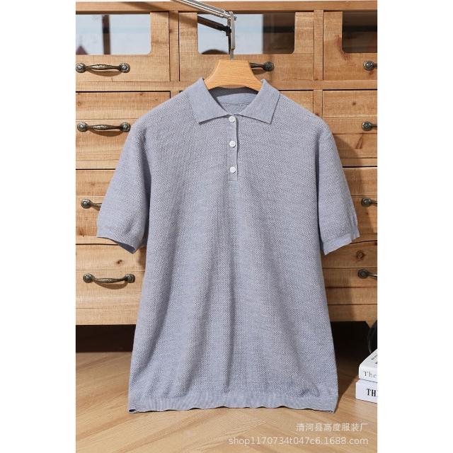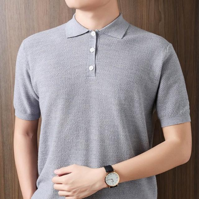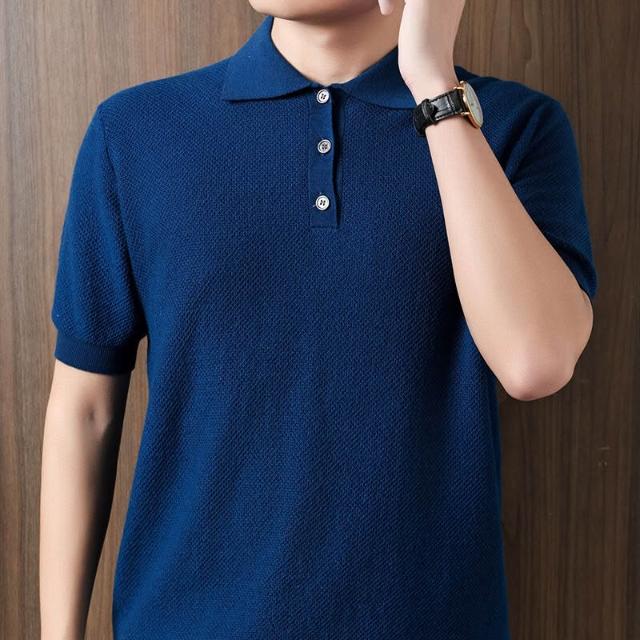 簡優 精紡翻領羊毛衫新款男短袖t恤POLO薄款商務針織衫打底半袖毛衣