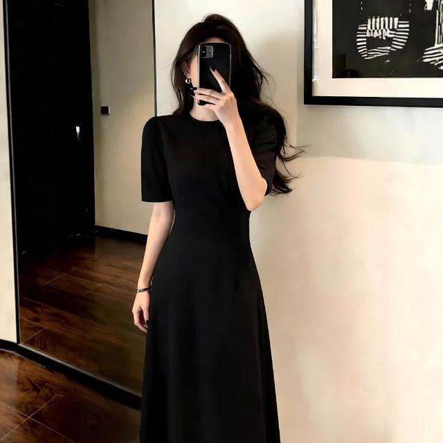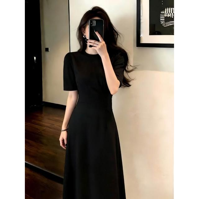 簡優 赫本風黑色連衣裙女短袖修身顯瘦氣質中長款輕熟風高級感裙子夏