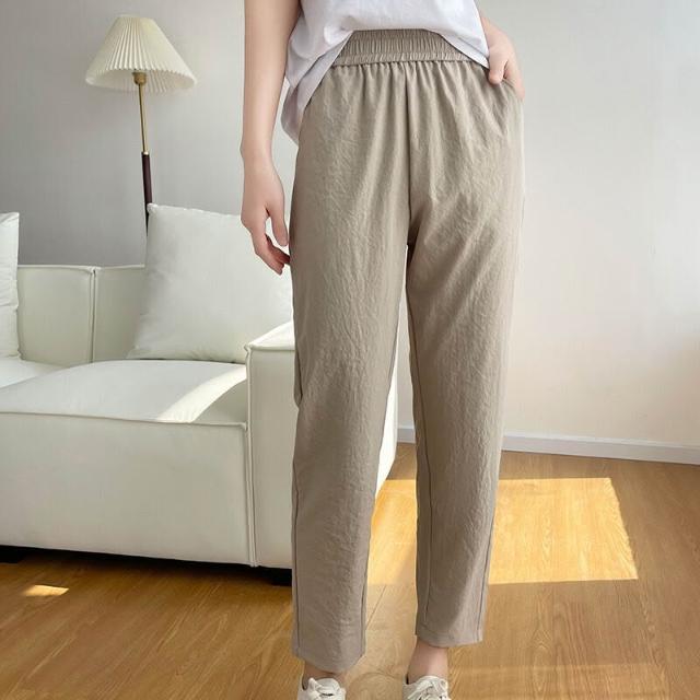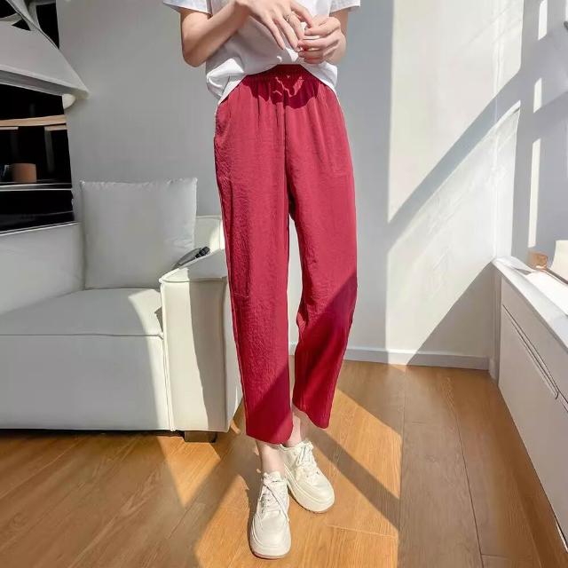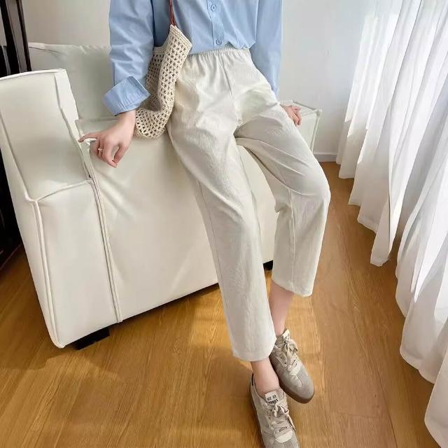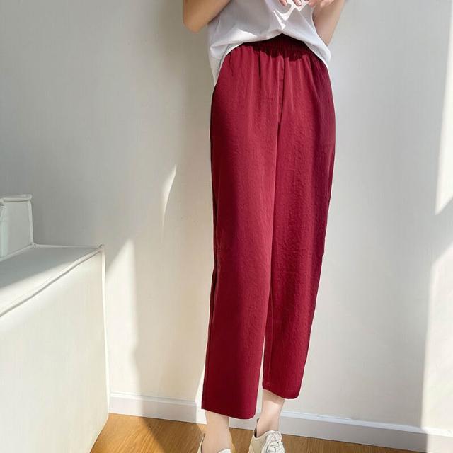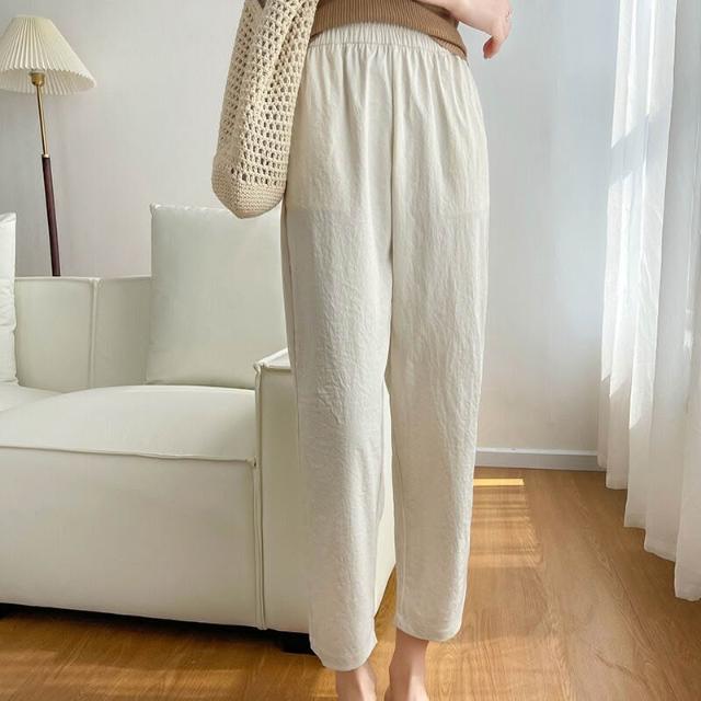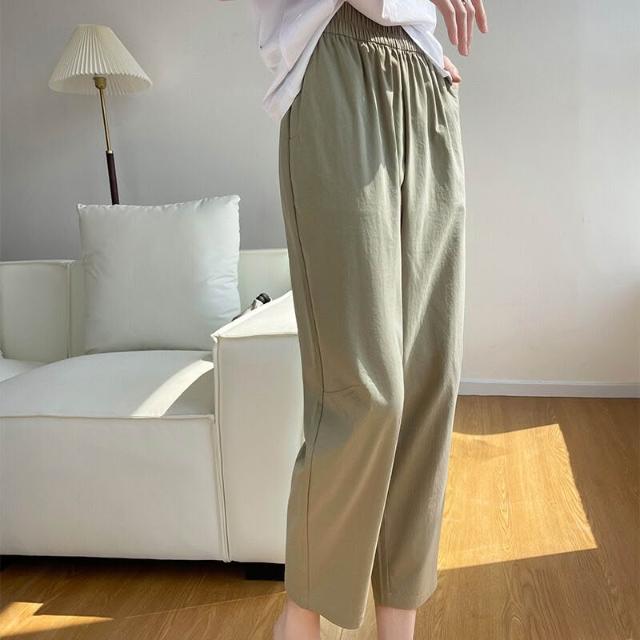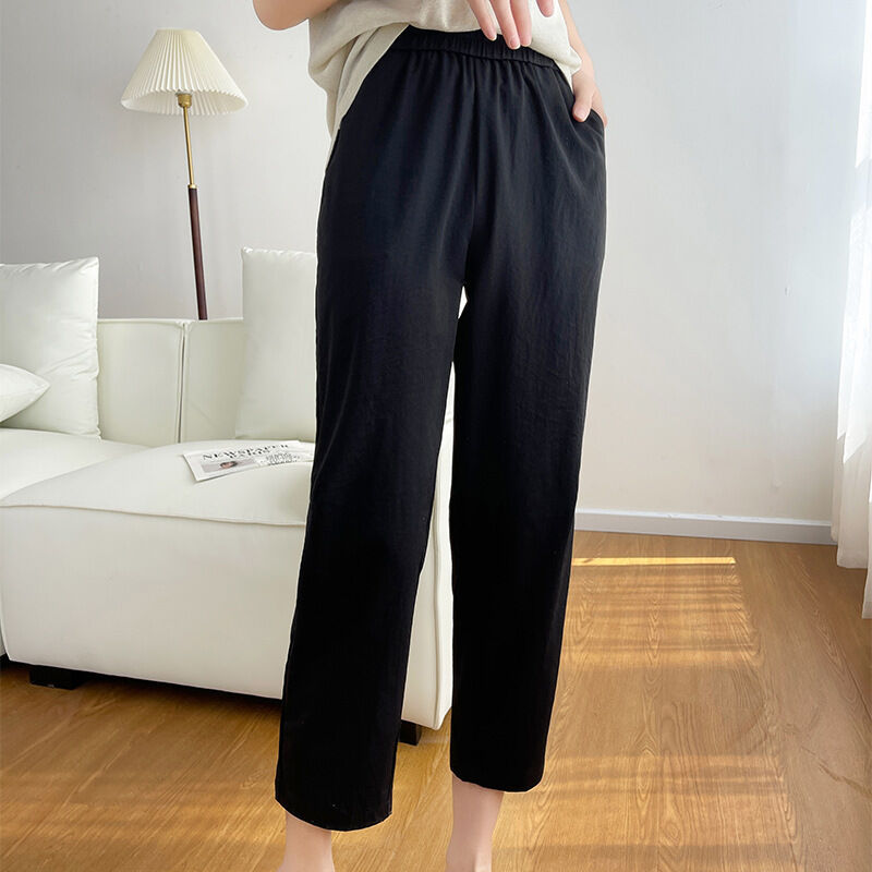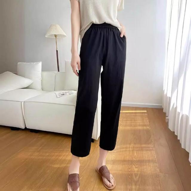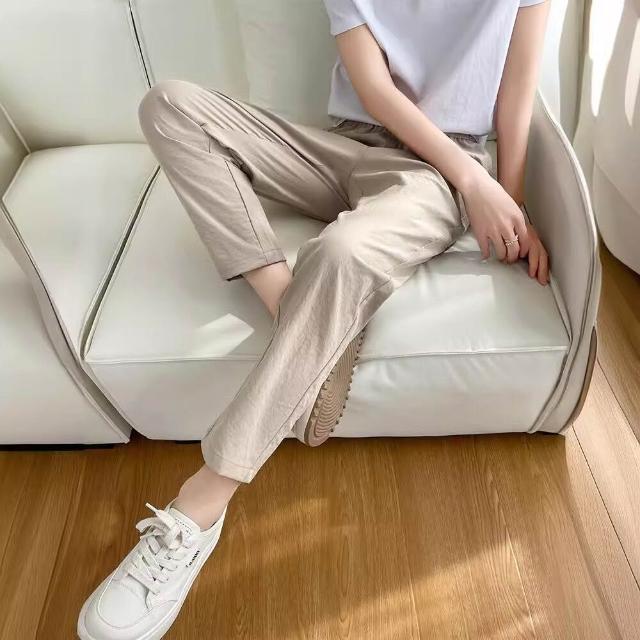 簡優 冰絲棉麻褲女春秋夏季薄款中年媽媽褲子新款九分蘿蔔褲休閑褲