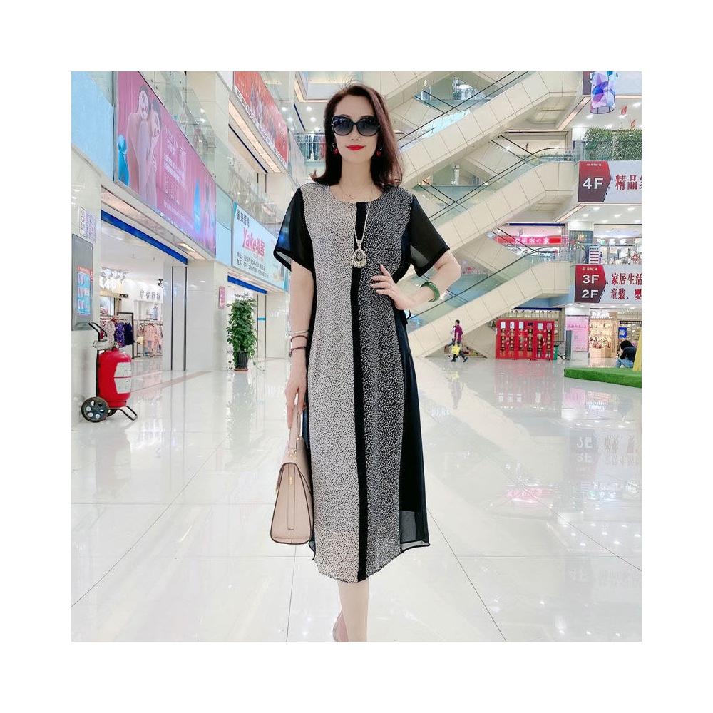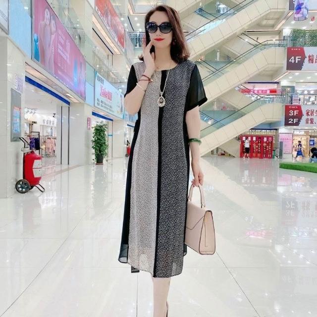 簡優 夏季新款媽媽裝真絲顯瘦連衣裙寬松遮肚洋氣氣質休閑長裙子潮