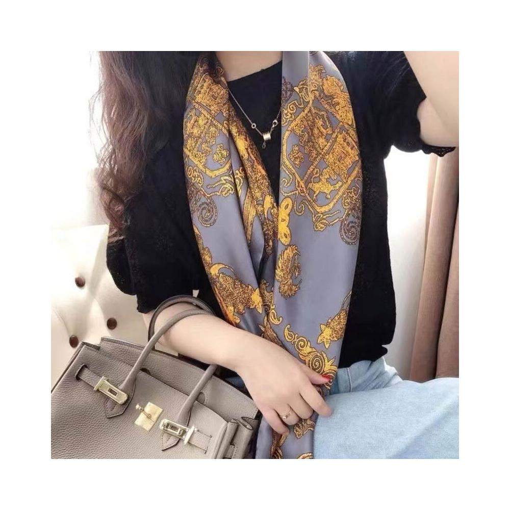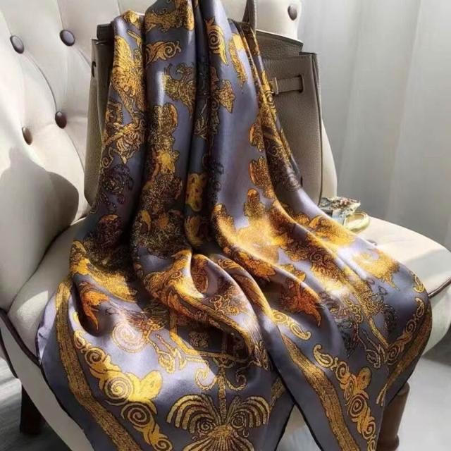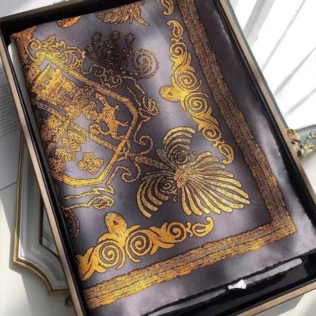 簡優 100%桑蠶絲鳳圖騰108左右素绉緞高端真絲女士絲巾圍巾