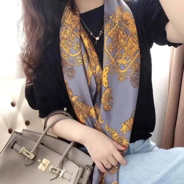 簡優 100%桑蠶絲鳳圖騰108左右素绉緞高端真絲女士絲巾圍巾