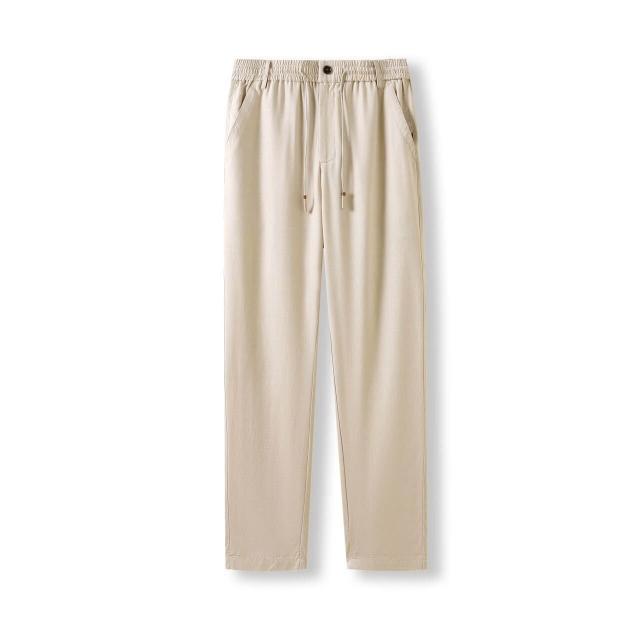 簡優 透氣速幹男士休閑長褲抽繩直筒寬松薄款春夏新款米白黑藏青卡其色