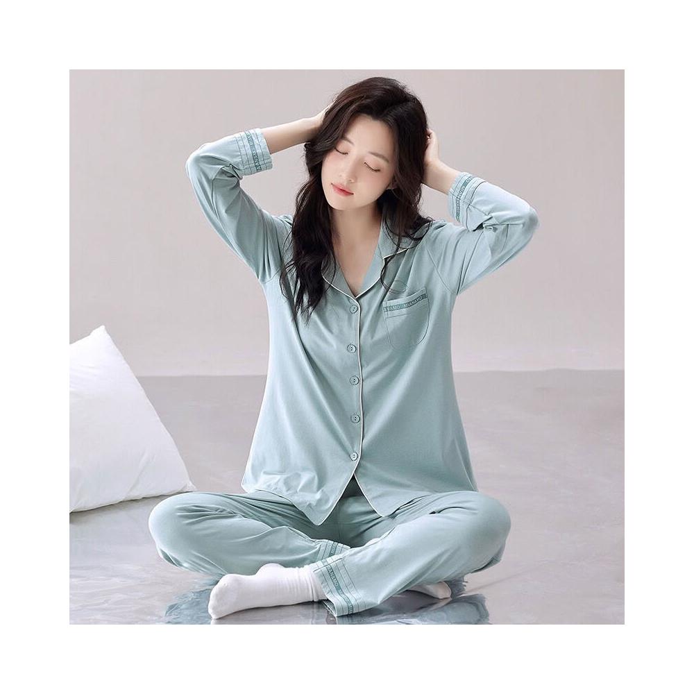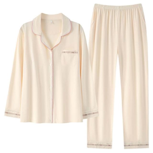 簡優 女士睡衣莫代爾棉綢薄款春秋款長袖媽媽大碼開衫夏天空調房家居服