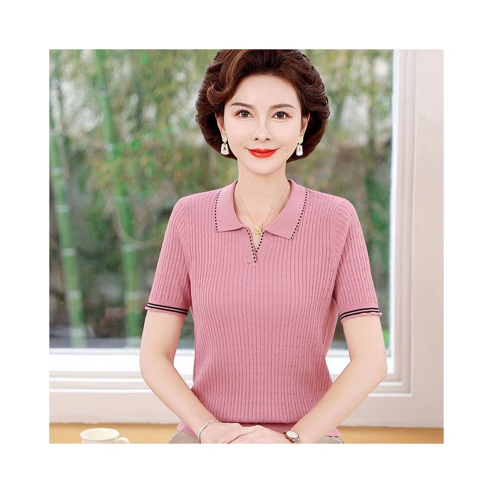 簡優 夏季女裝翻領polo冰絲針織衫媽媽裝新款時尚中老年短袖t恤打底衫
