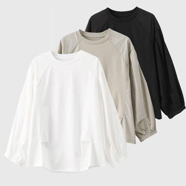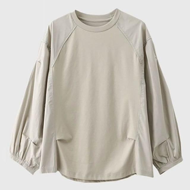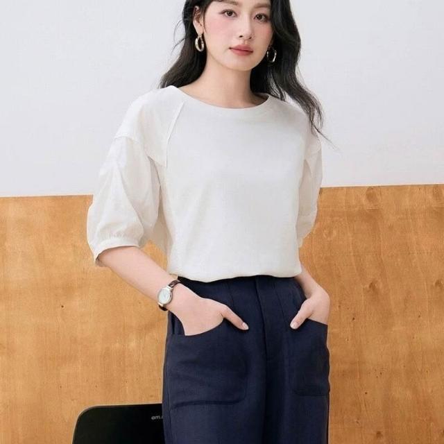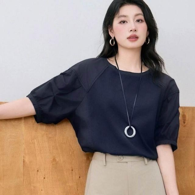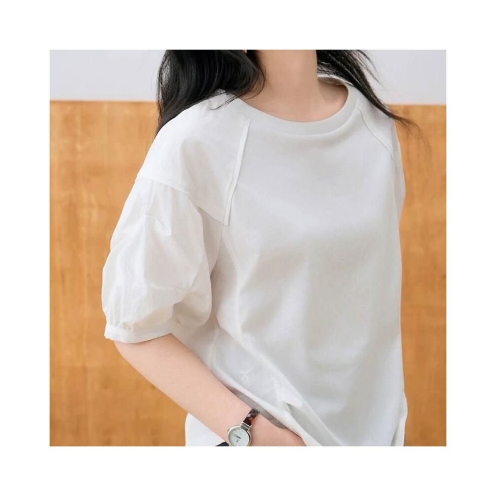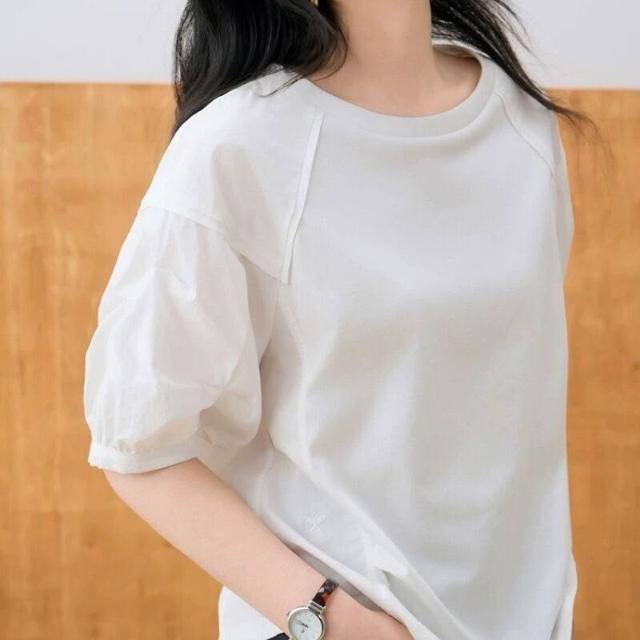 簡優 歐貨休閑圓領泡泡袖恤夏季大碼胖巨瘦松氣質短袖上衣簡約t恤