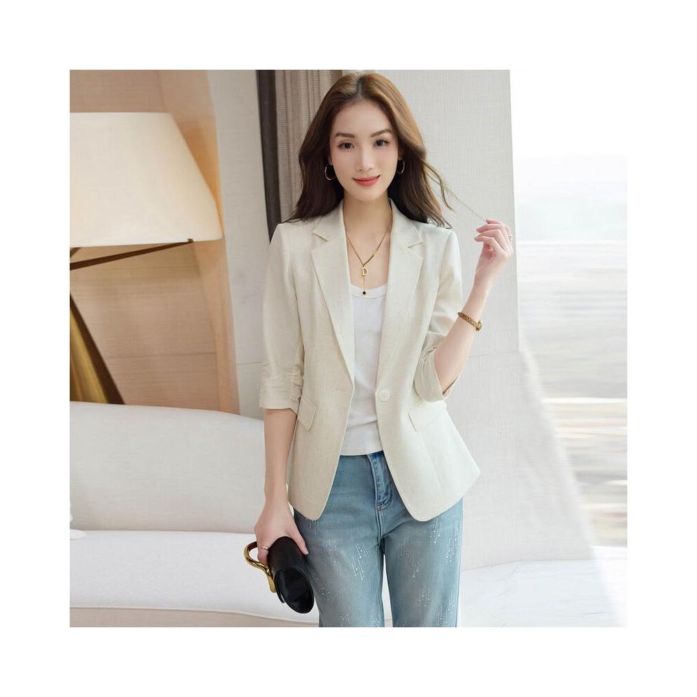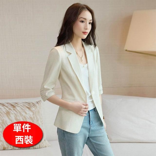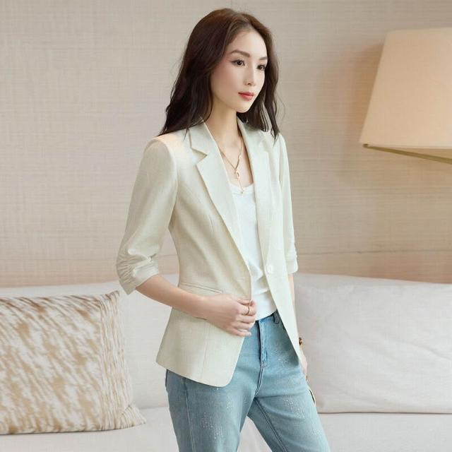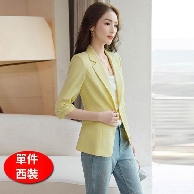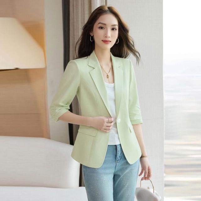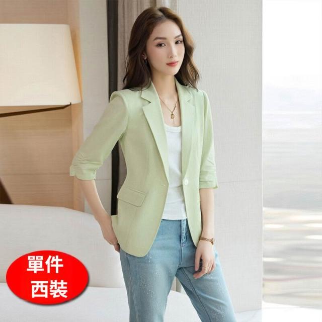 簡優 綠色西裝外套女小個子夏季薄款2026新款修身高級感七分袖休閑西服