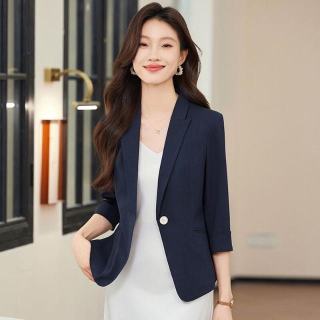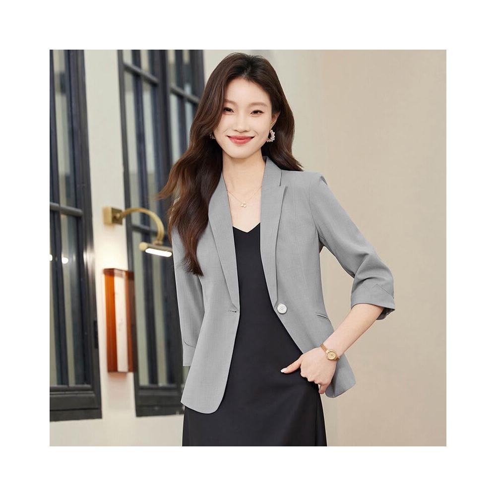 簡優 休閑灰色中袖西裝外套女2026春夏小個子通勤西服上衣