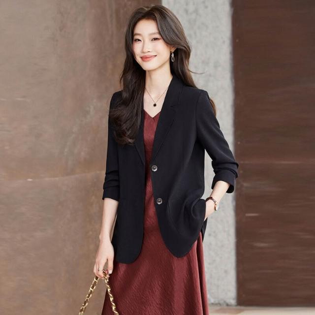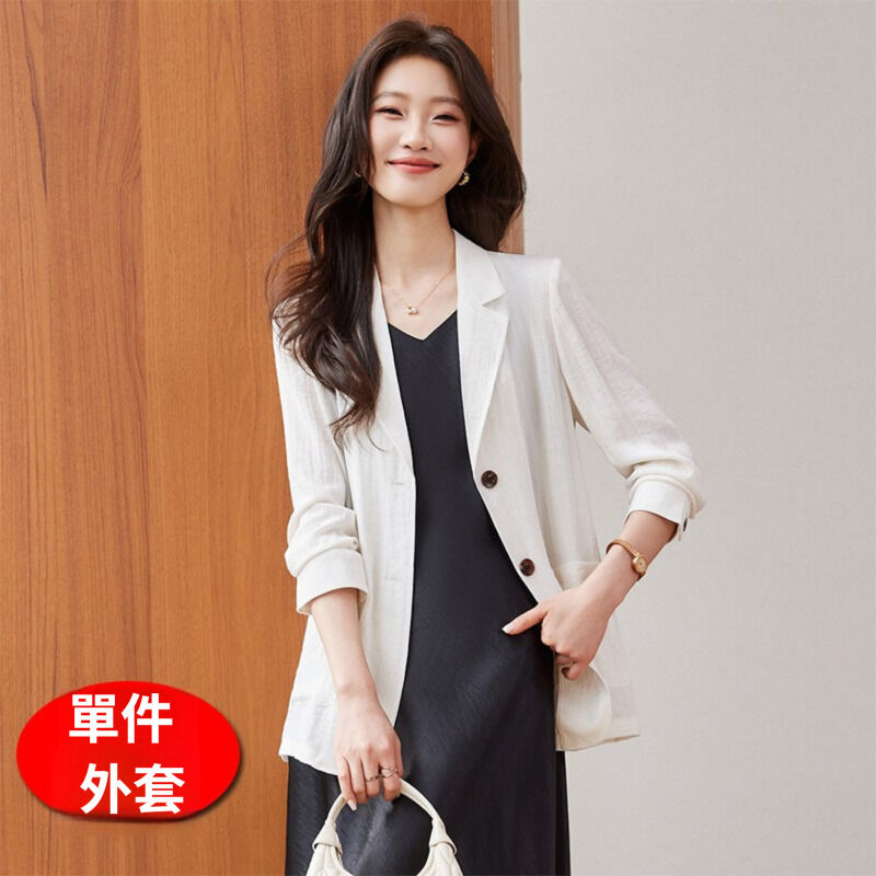 簡優 高級感亞麻西裝外套女2026新款春秋時尚今年流行小西服連衣裙套裝