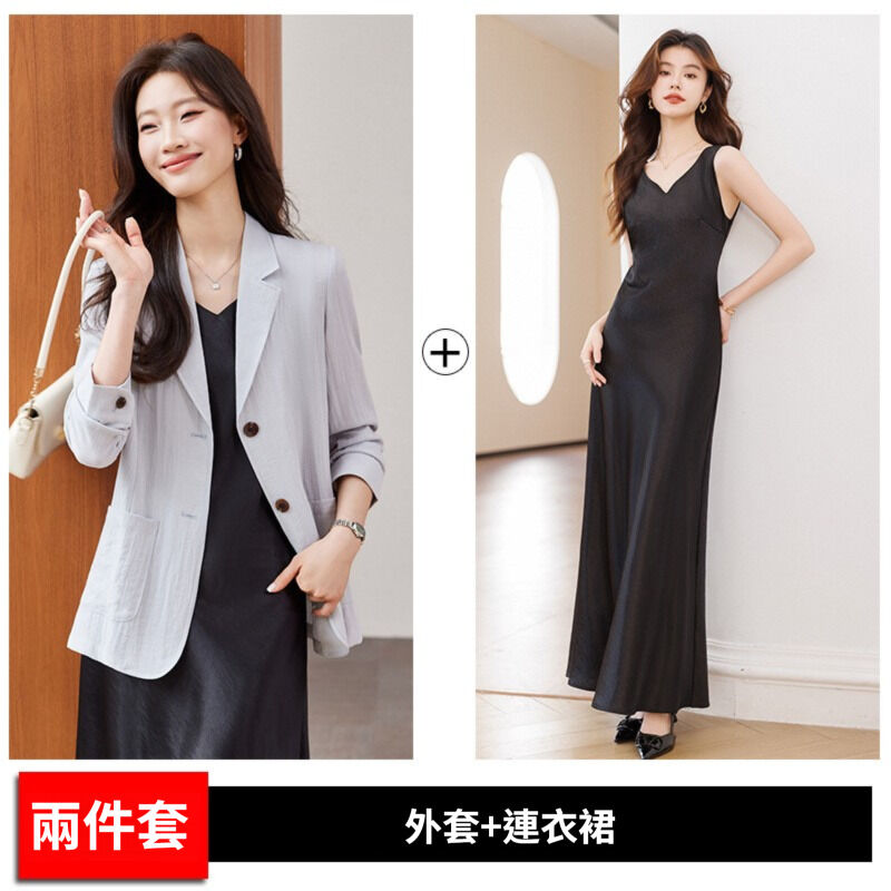簡優 高級感亞麻西裝外套女2026新款春秋時尚今年流行小西服連衣裙套裝