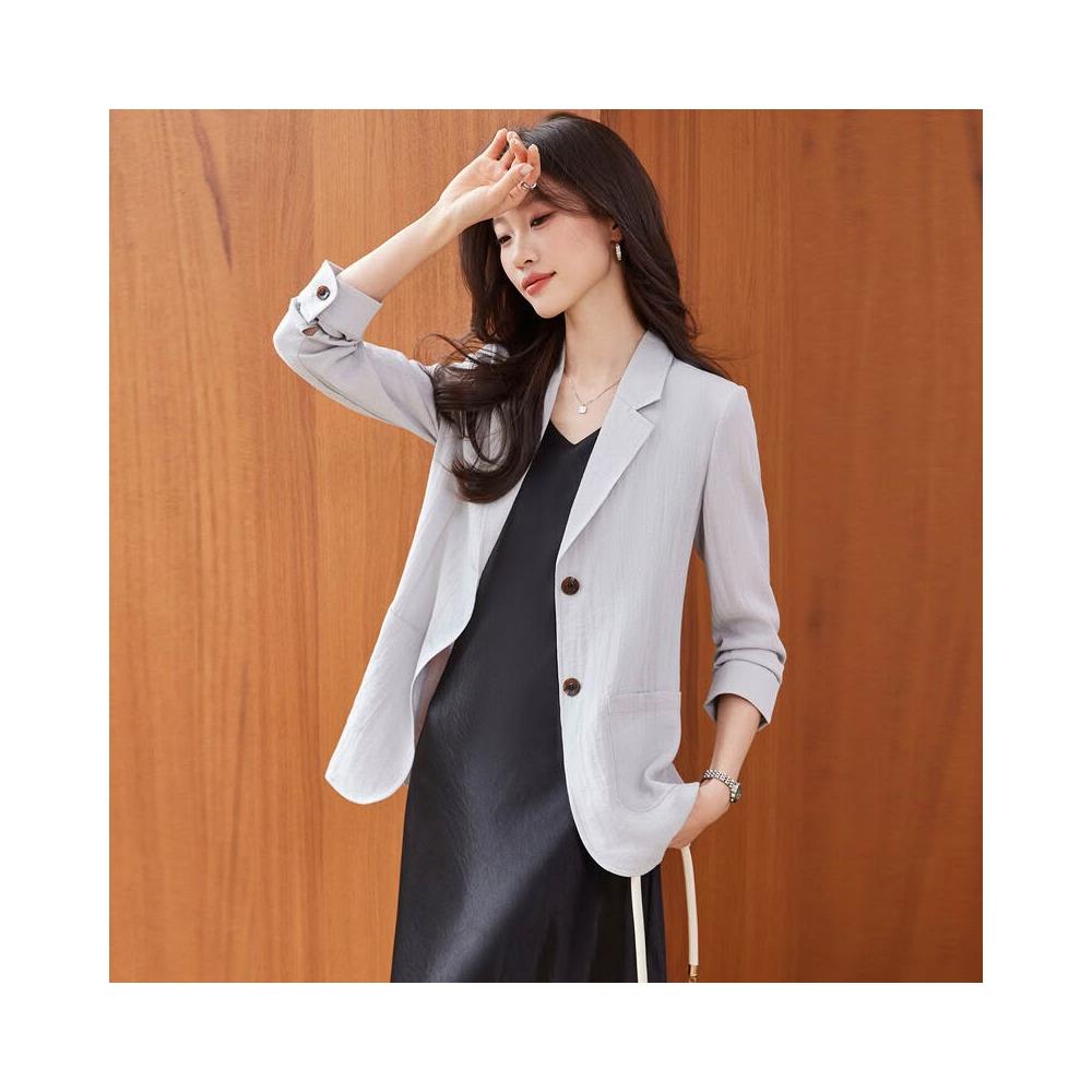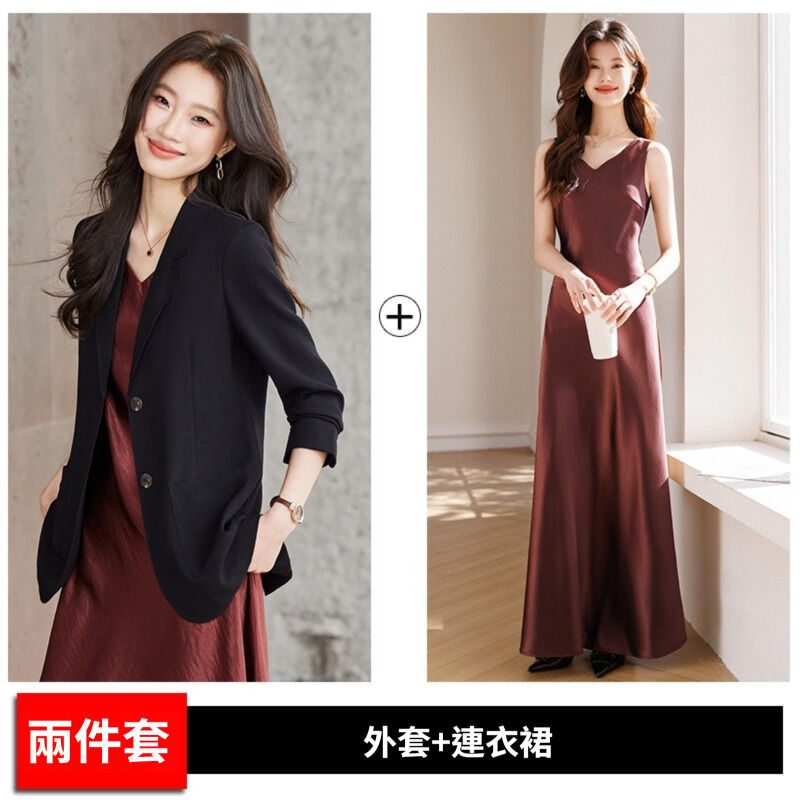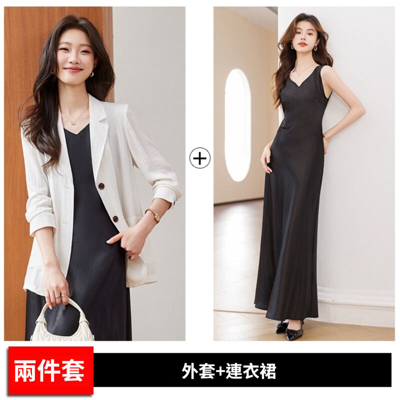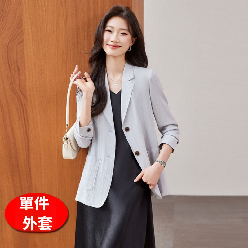 簡優 高級感亞麻西裝外套女2026新款春秋時尚今年流行小西服連衣裙套裝
