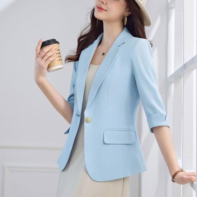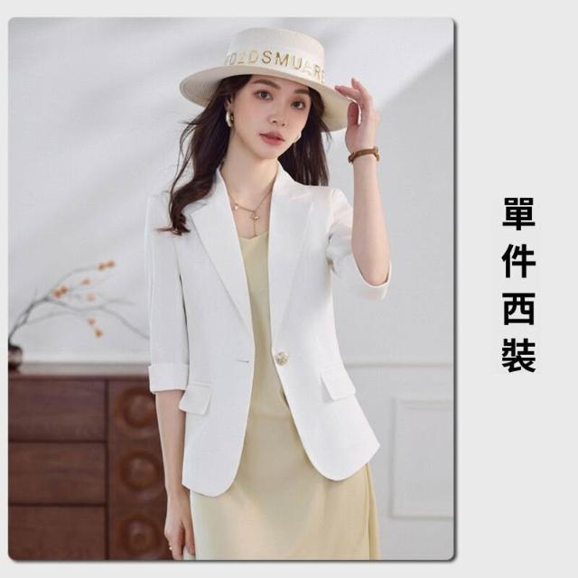簡優 白色小西裝外套女夏季薄款2026新款氣質小個子七分袖短款無領西服