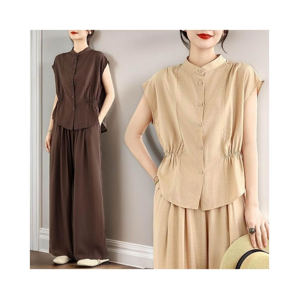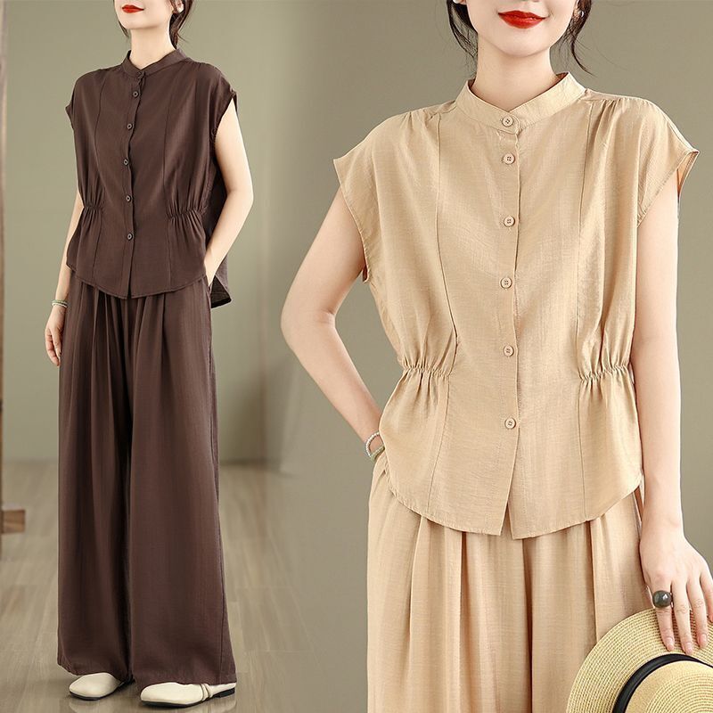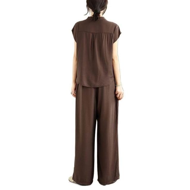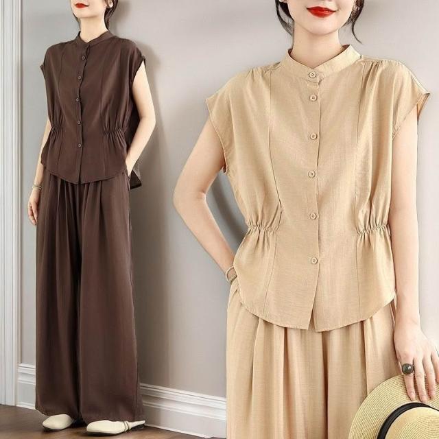 簡優 時尚套裝女裝氣質夏季新款休閑短袖闊腿褲洋氣兩件套媽媽套裝