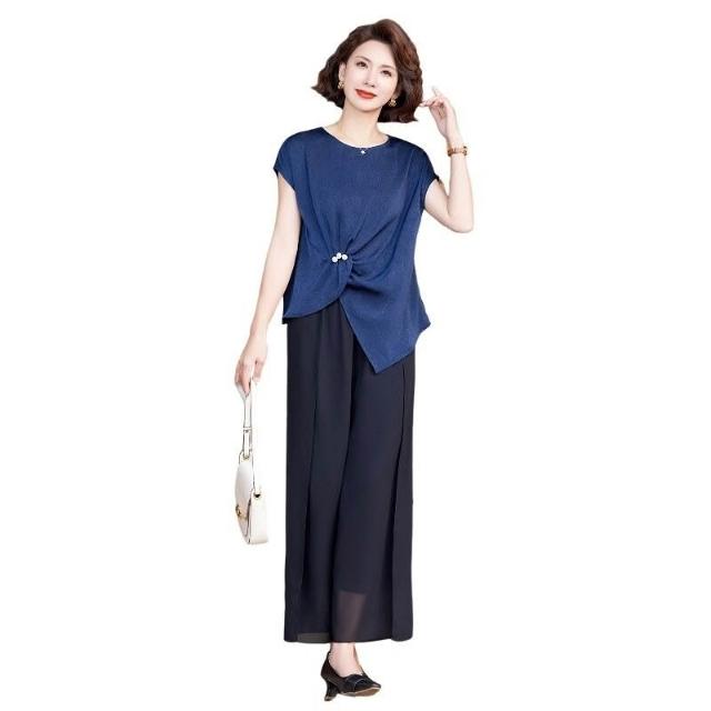 簡優 洋氣媽媽短袖T恤薄中年女夏裝新款上衣中老年氣質雪紡套裝