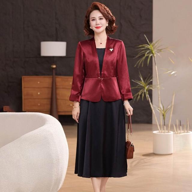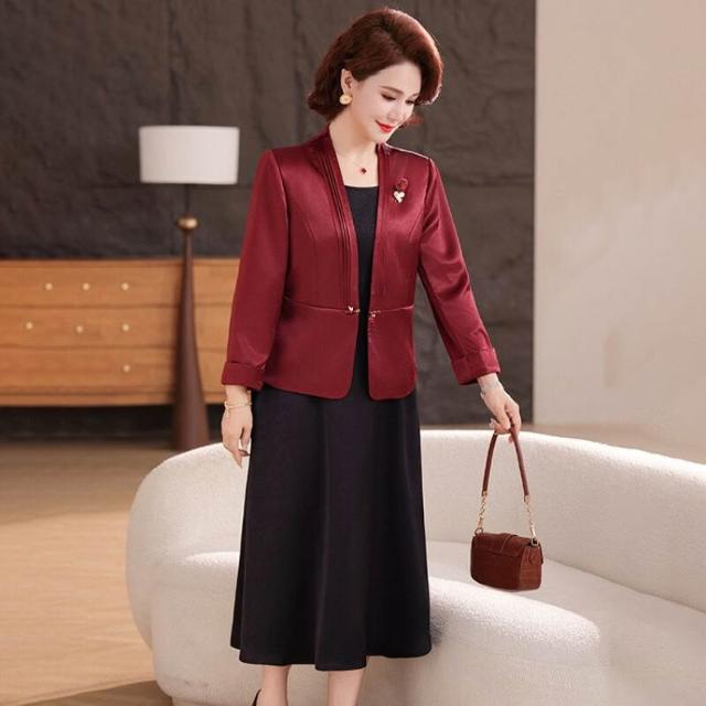 簡優 喜婆婆高檔婚宴裝連衣裙洋氣媽媽新款媽媽秋裝西服外套裙子兩件套