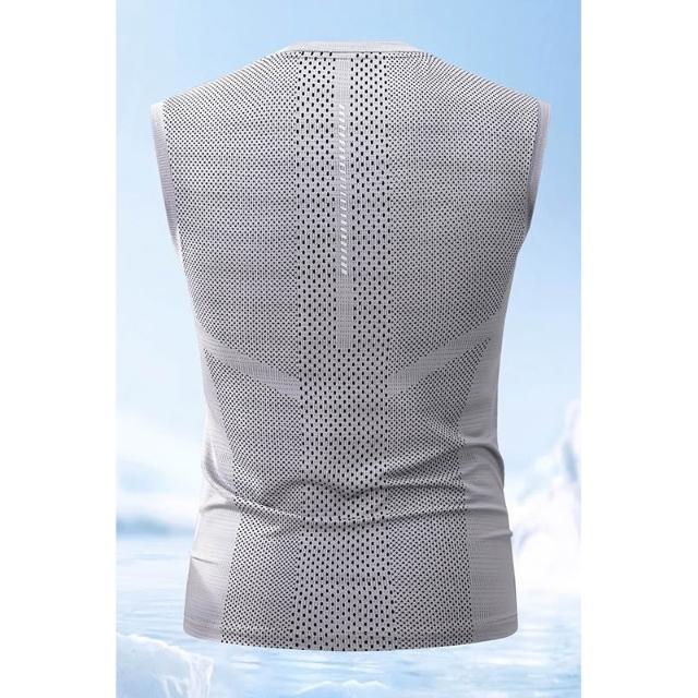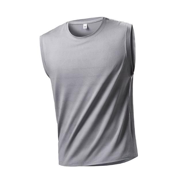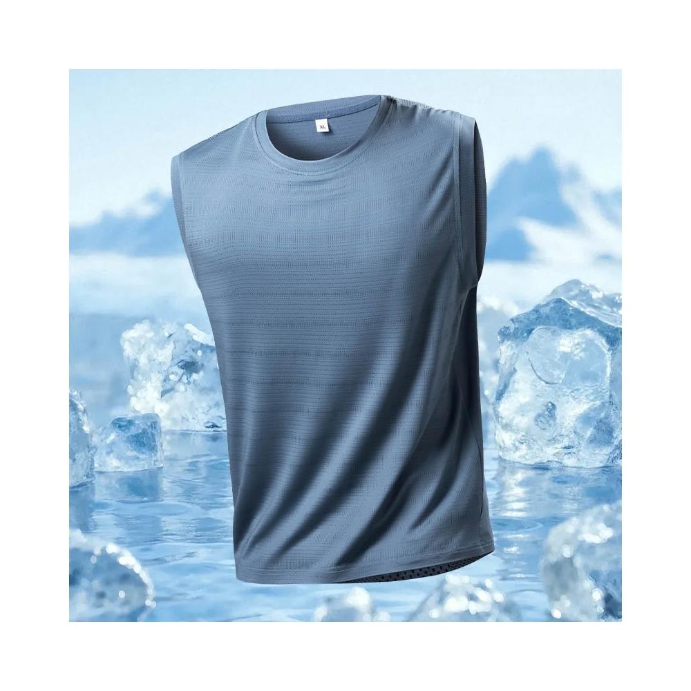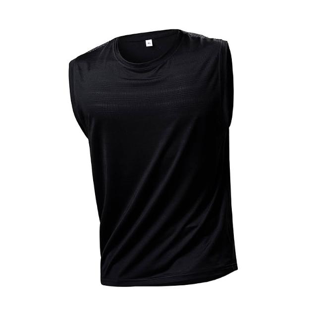 跨境專供冰絲背心大碼中青年時尚休閒夏季冰涼無袖跑步彈力男上衣