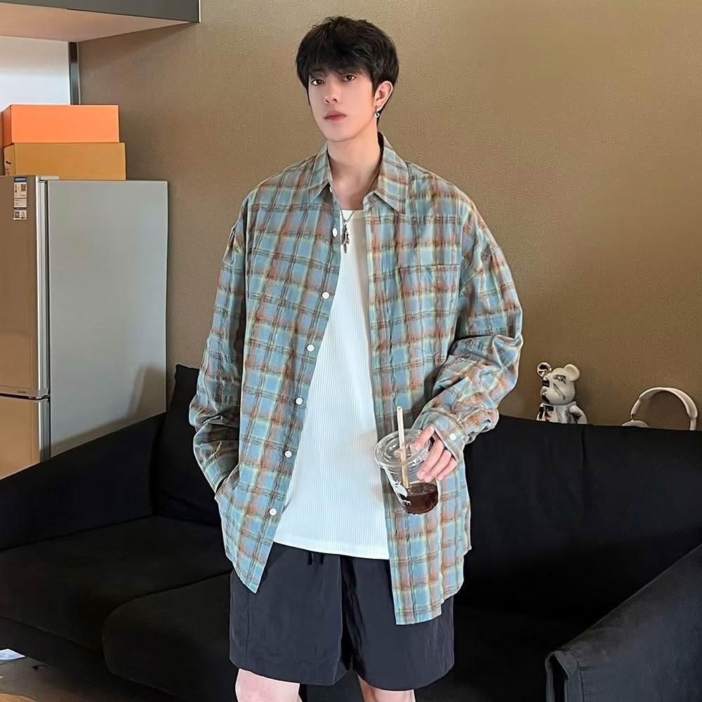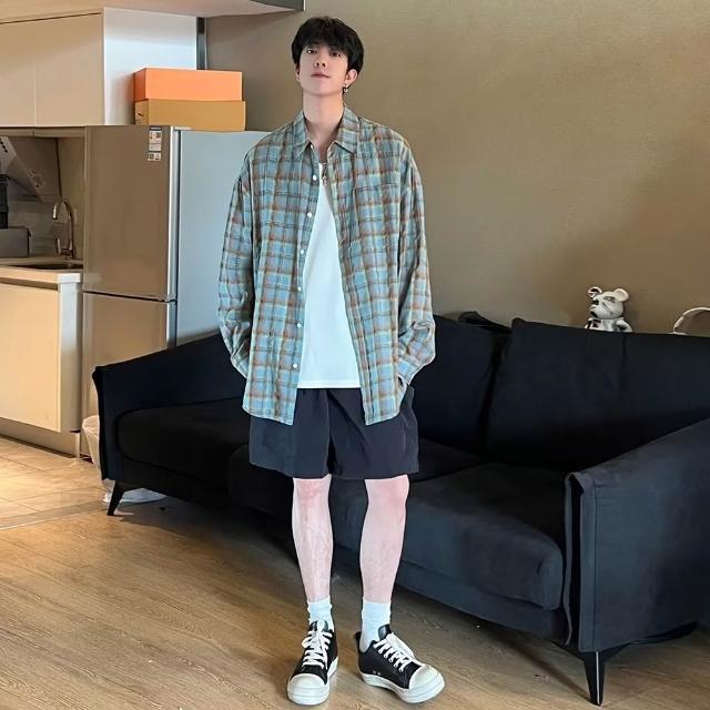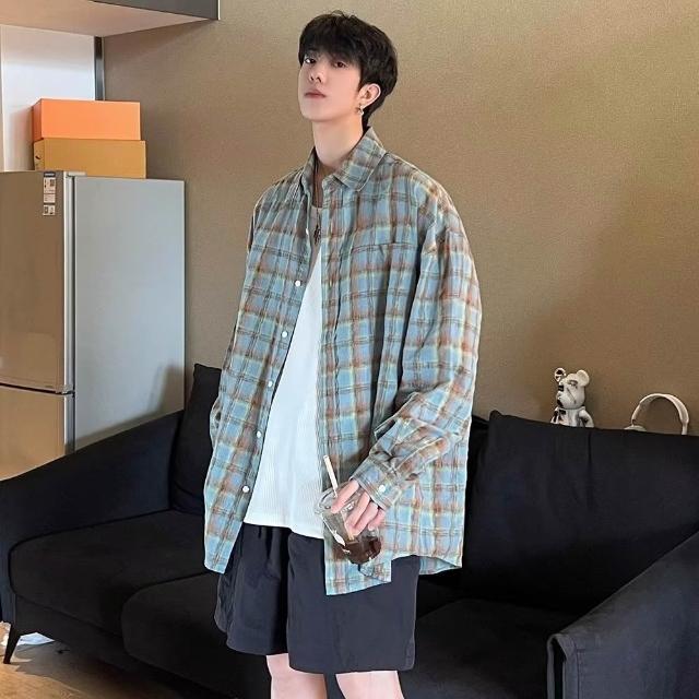 格子襯衫男女同款寬鬆潮流痞帥長袖格紋襯衣ins帥氣。薄款外套