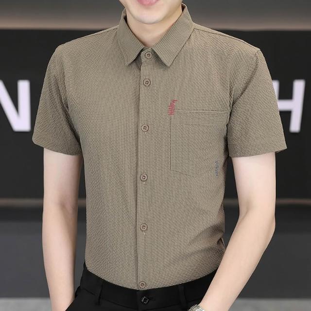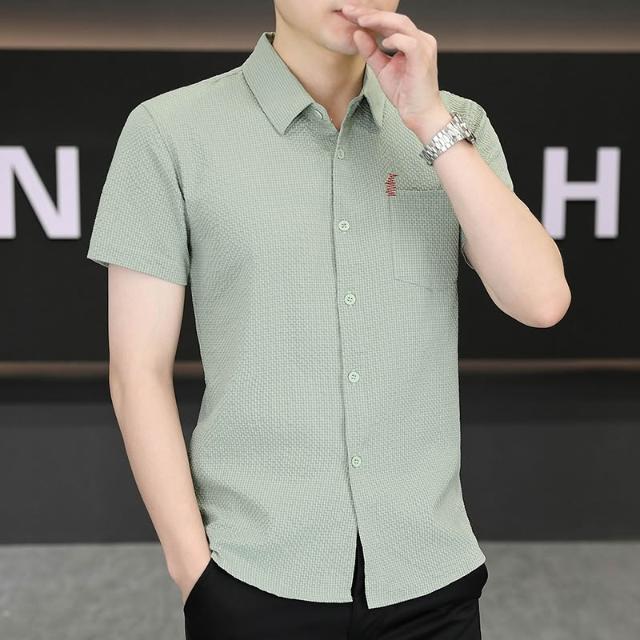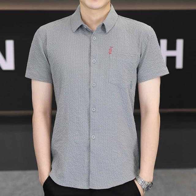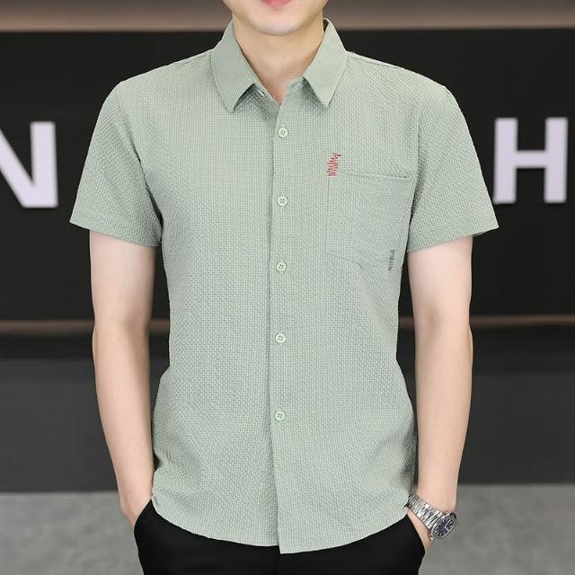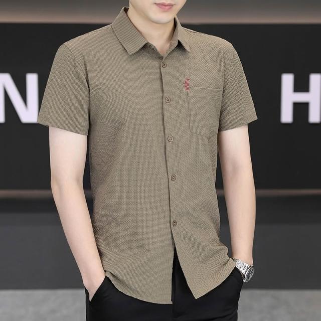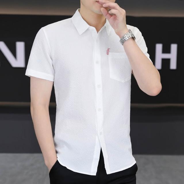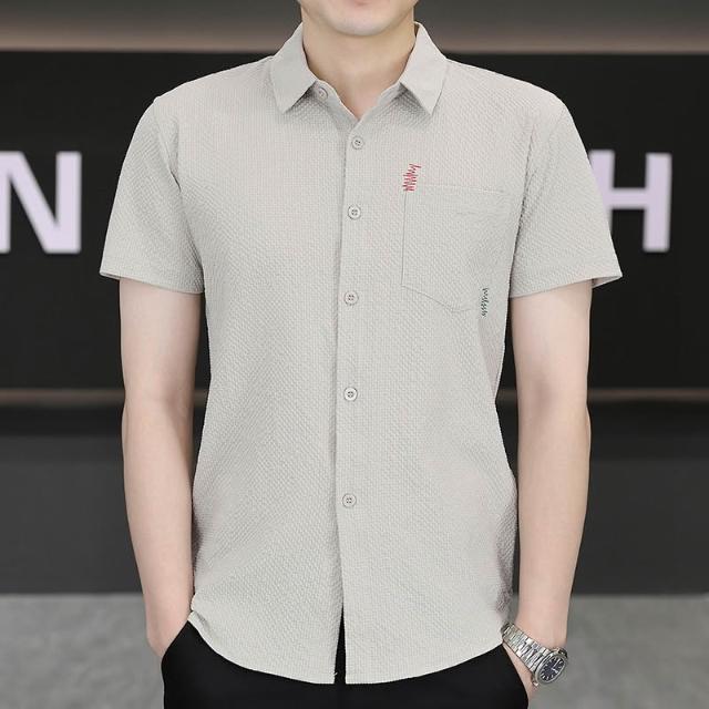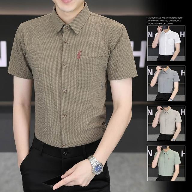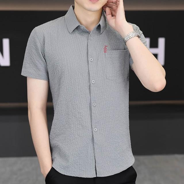 男士新款冰絲短袖襯衫青年休閒襯衣