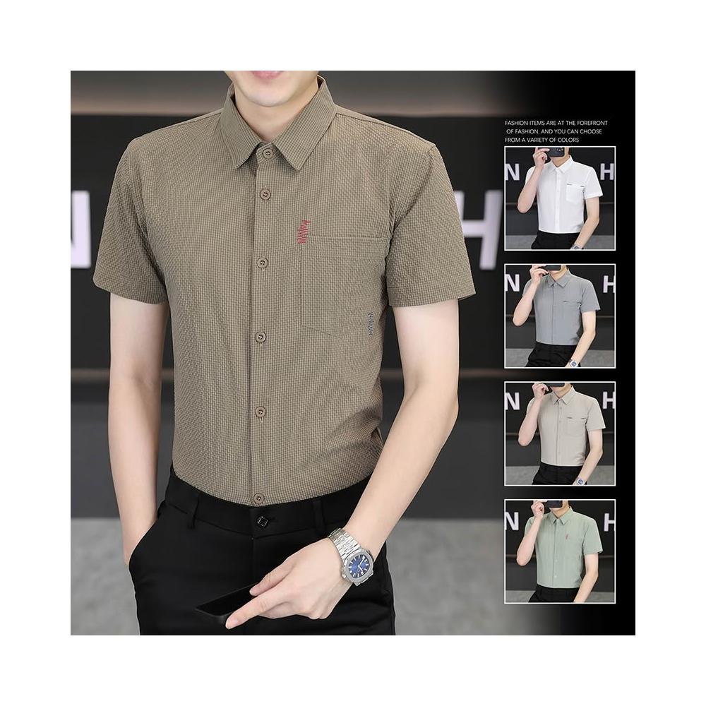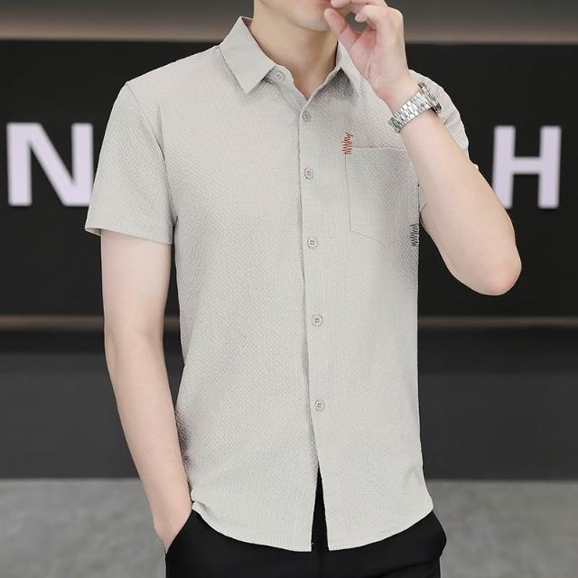 男士新款冰絲短袖襯衫青年休閒襯衣