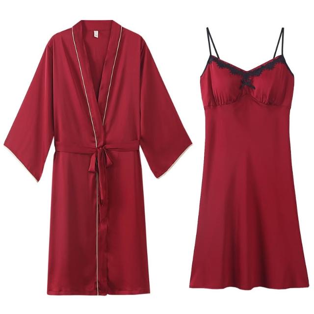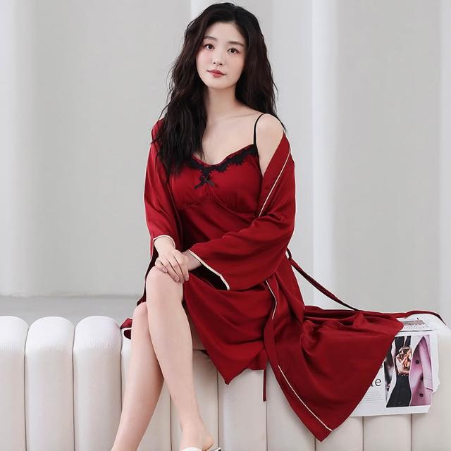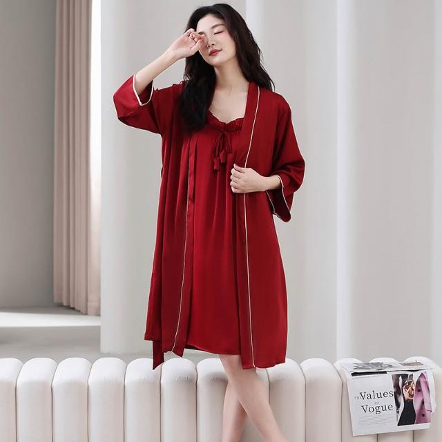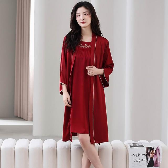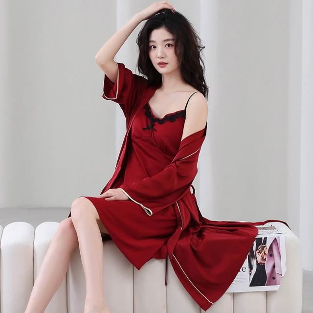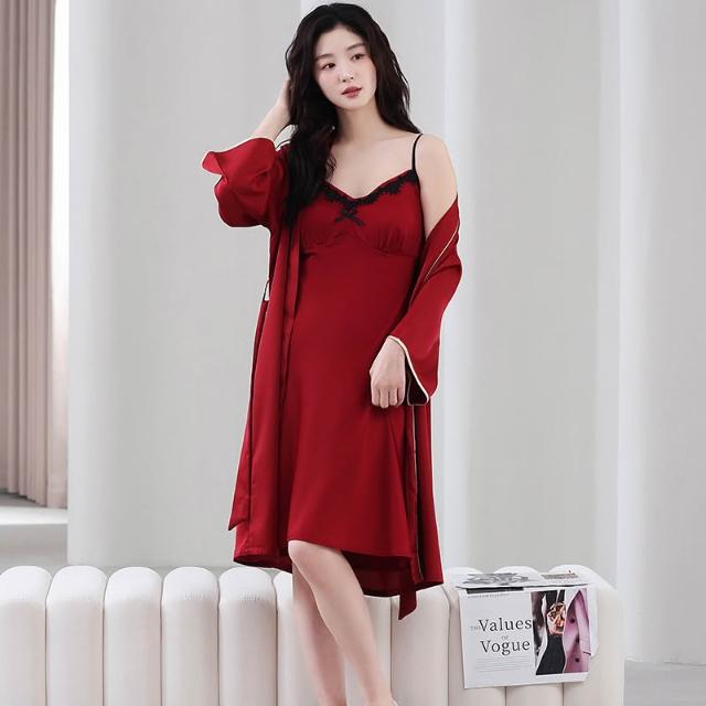 免運 夏季情侶睡衣女吊帶冰絲新婚結婚家居服紅色新娘睡袍時尚睡衣套裝
