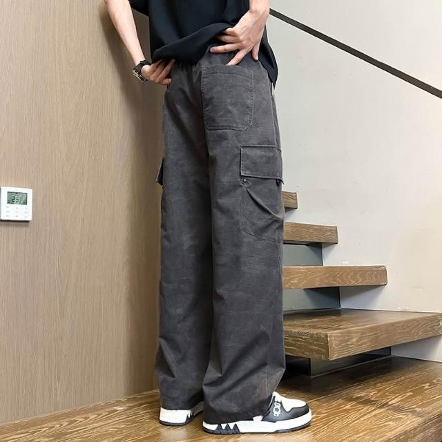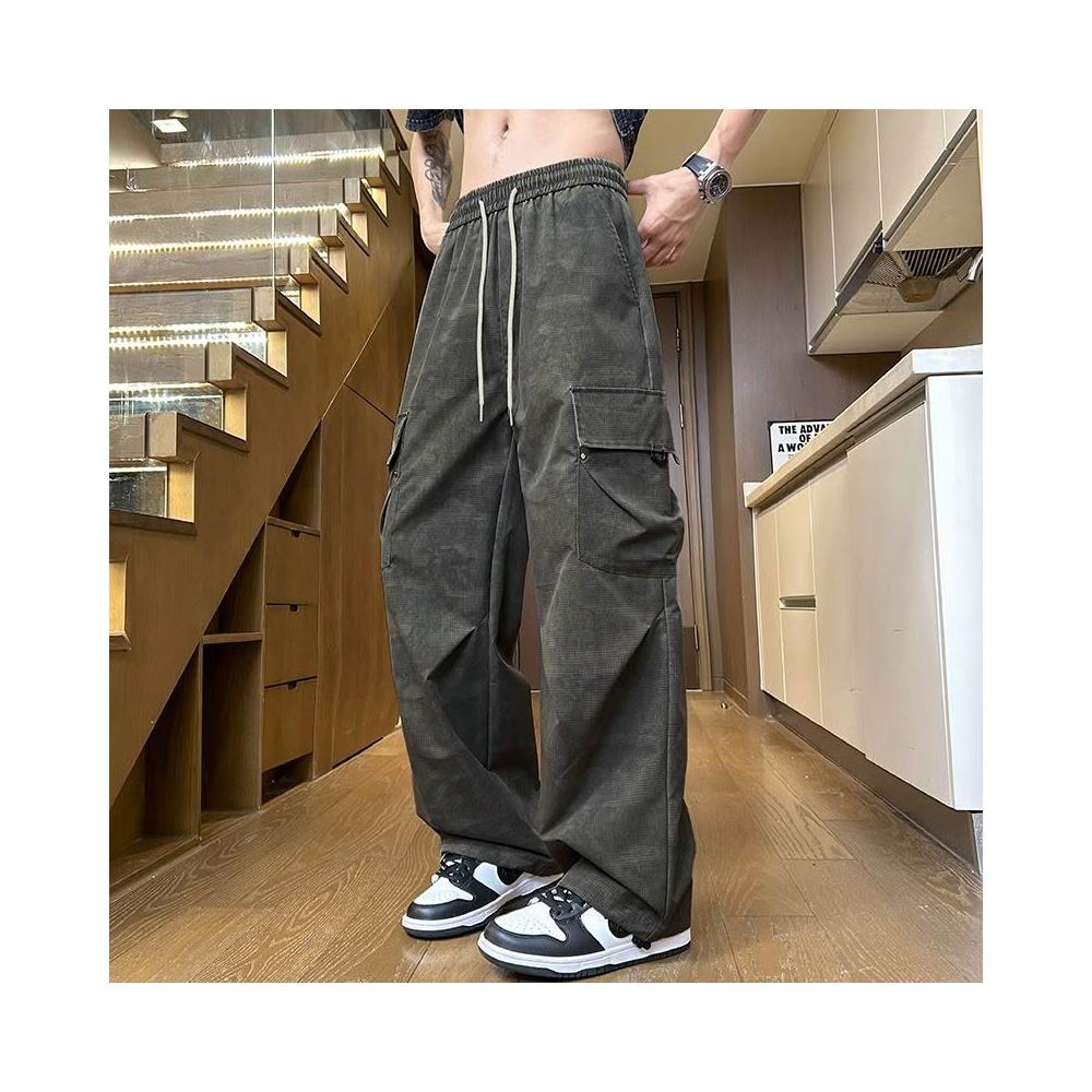 免運 實拍夏季新款男士薄款休閒褲寬鬆直筒時尚潮流百搭長褲男生工裝褲