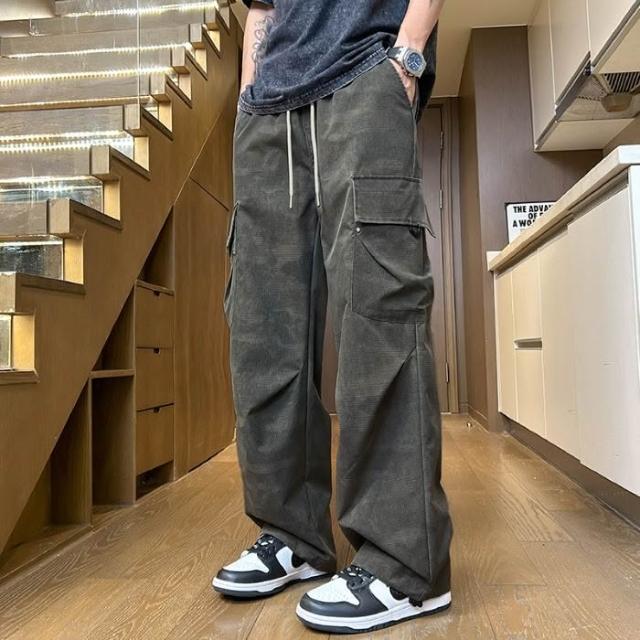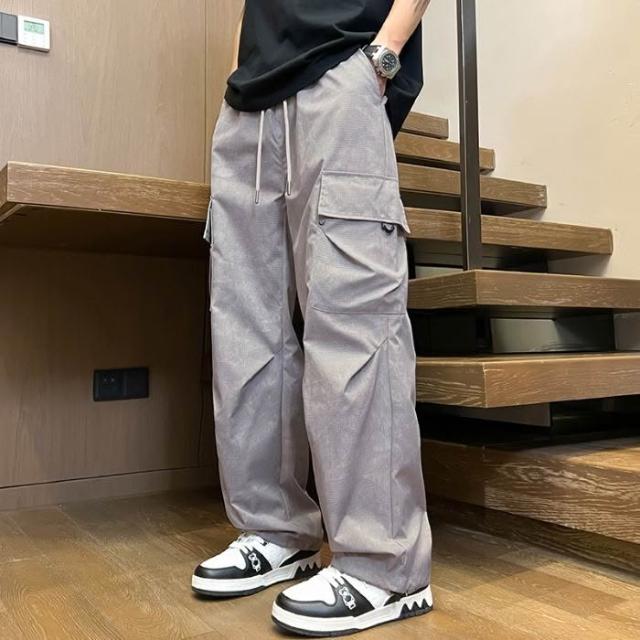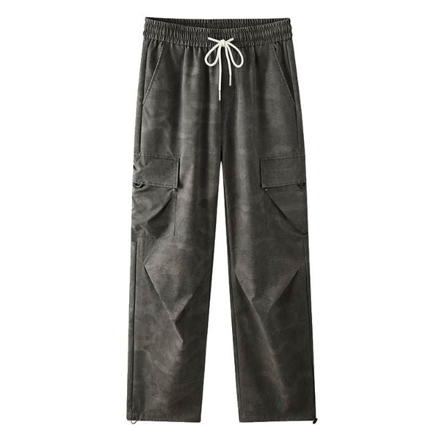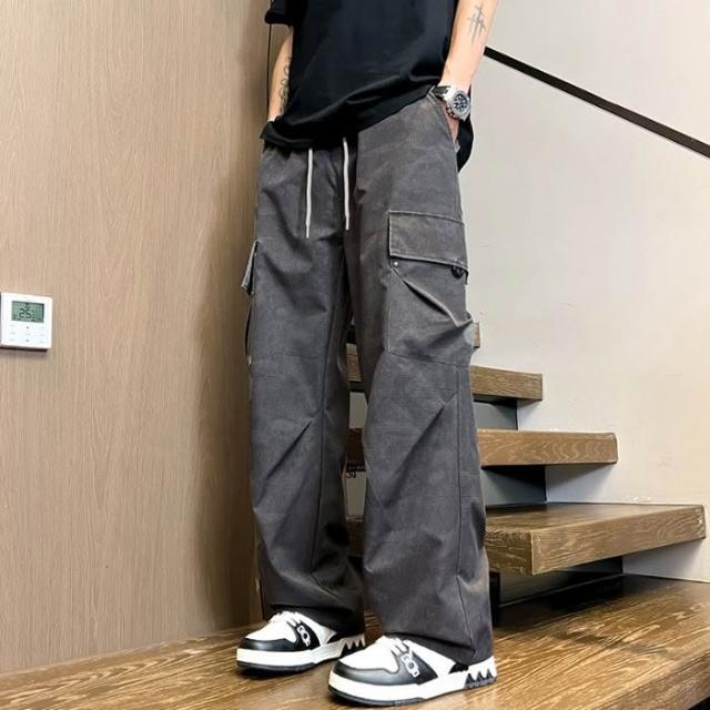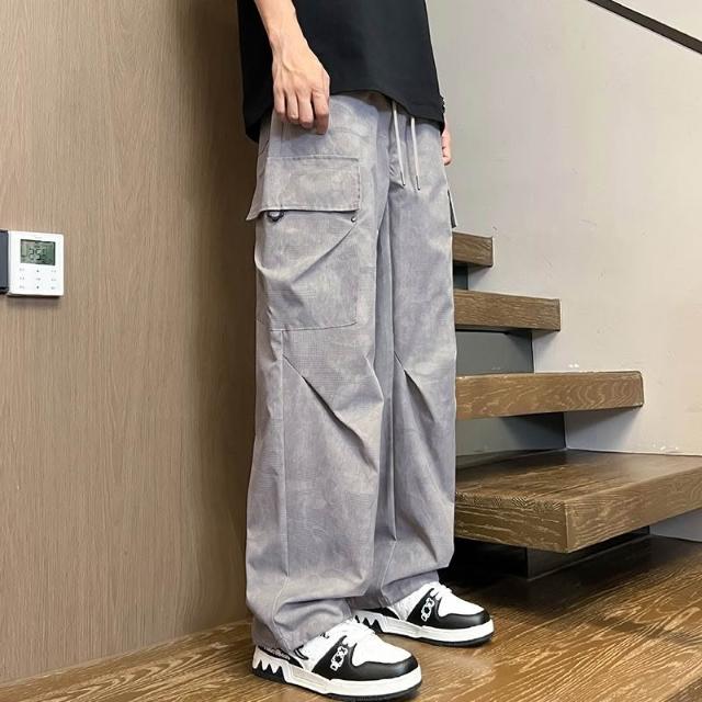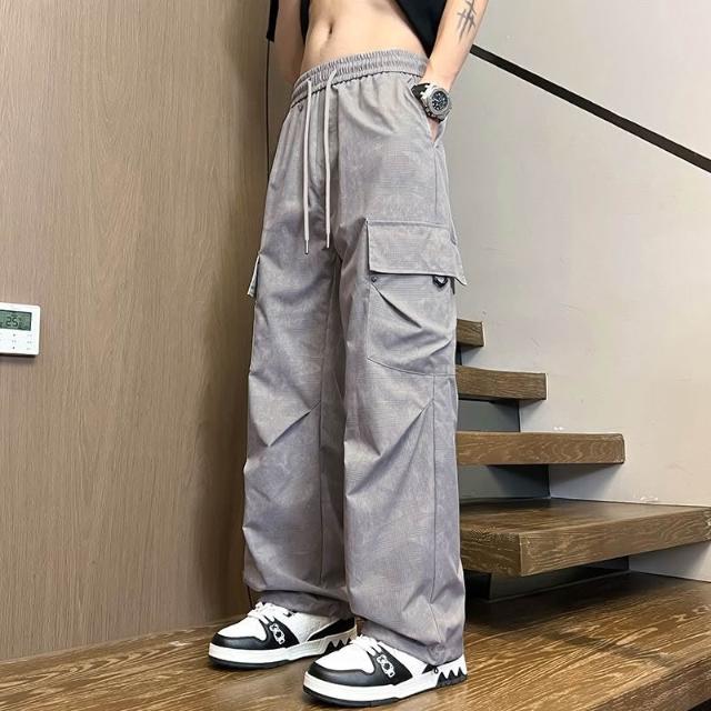 免運 實拍夏季新款男士薄款休閒褲寬鬆直筒時尚潮流百搭長褲男生工裝褲