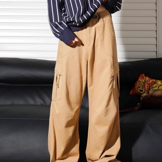 免運 春秋季美式傘兵褲百搭街舞休閒寬鬆拖地直筒嘻哈高街工裝褲男