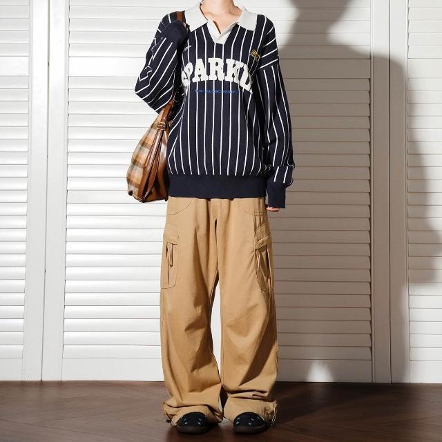 免運 春秋季美式傘兵褲百搭街舞休閒寬鬆拖地直筒嘻哈高街工裝褲男