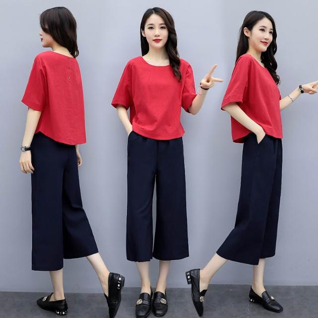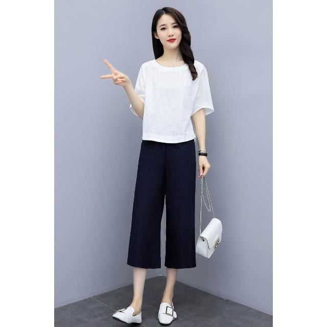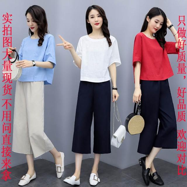 免運 實拍棉麻套裝女夏2020新款寬鬆時尚亞麻小個子休閒闊腿褲裙兩件套