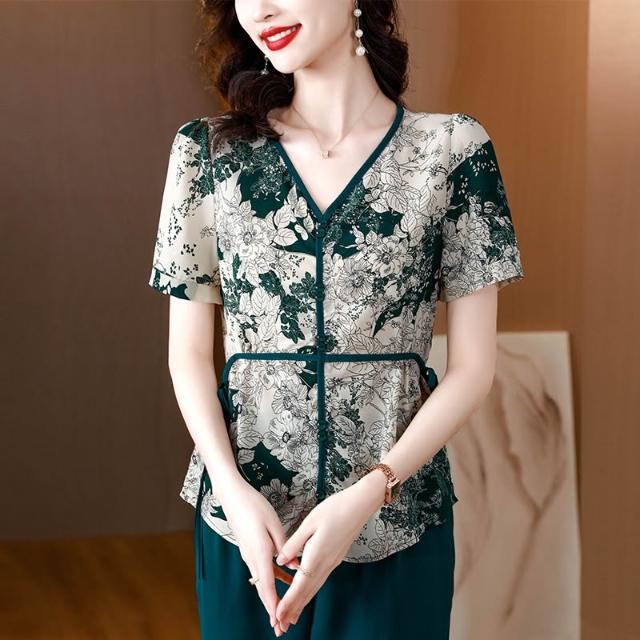 免運 中年媽媽2026新款碎花短袖雪紡T恤套裝40歲夏裝休閒時尚洋氣質女
