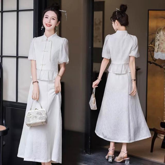 免運 新中式提花盤扣外套國風套裝女裝2026新款夏季休閒半身裙兩件套