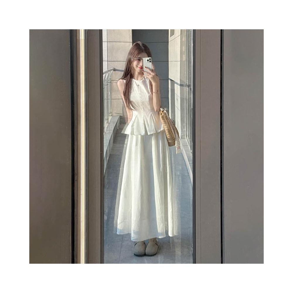 免運 法式溫柔白色背心吊帶連衣裙女夏季2026年新款巨好看氣質長裙套裝