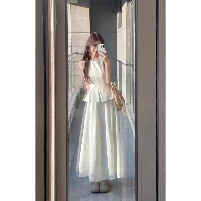 免運 法式溫柔白色背心吊帶連衣裙女夏季2026年新款巨好看氣質長裙套裝