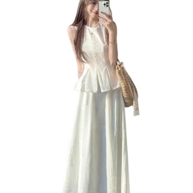免運 法式溫柔白色背心吊帶連衣裙女夏季2026年新款巨好看氣質長裙套裝
