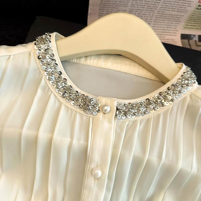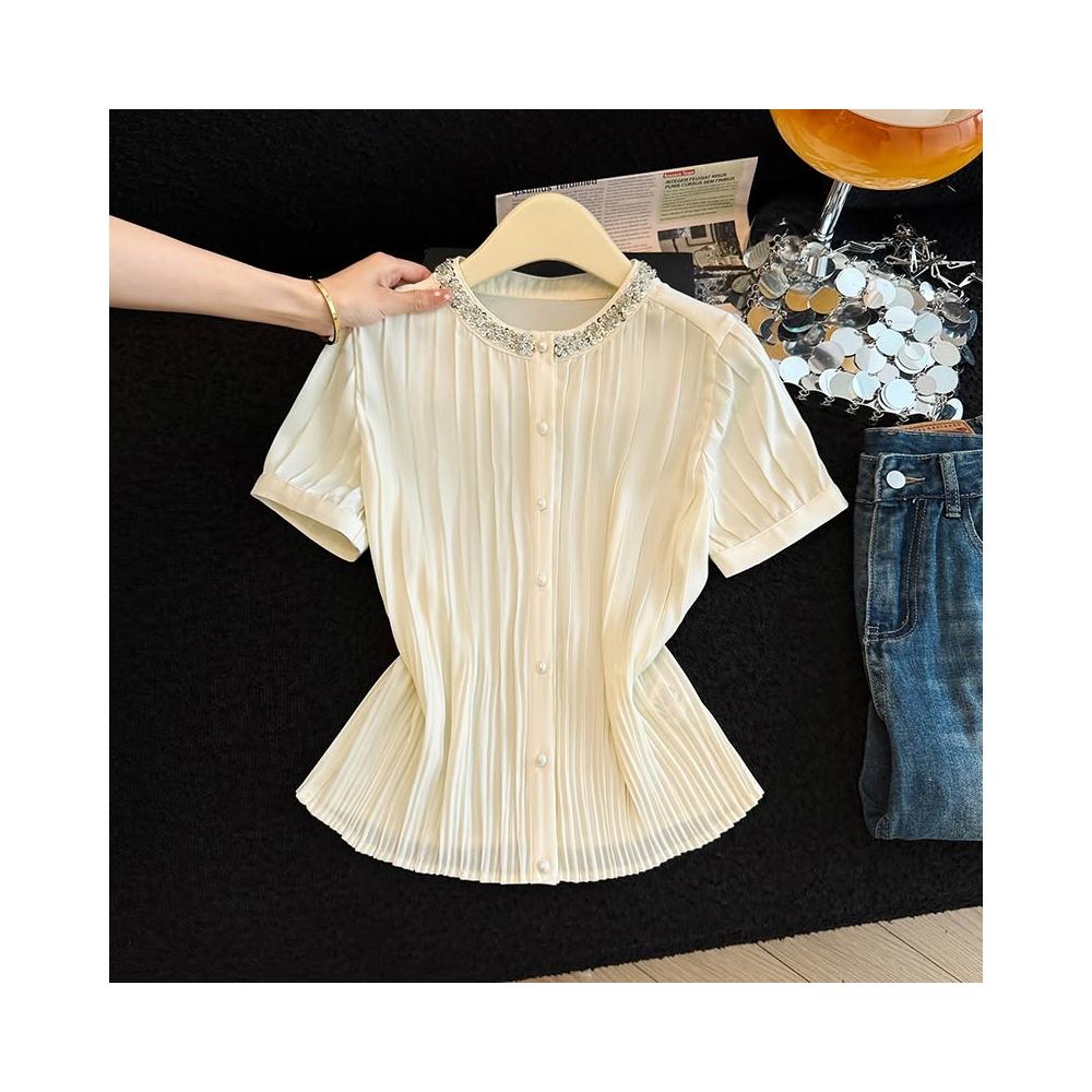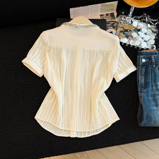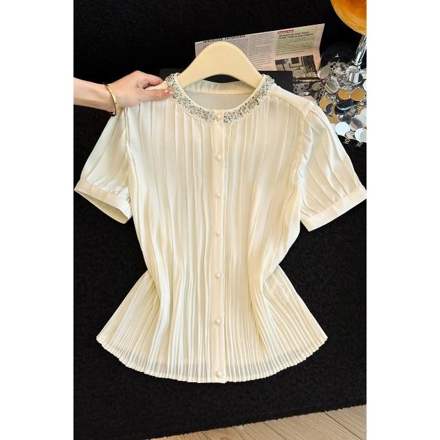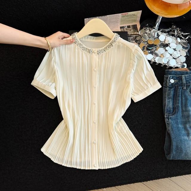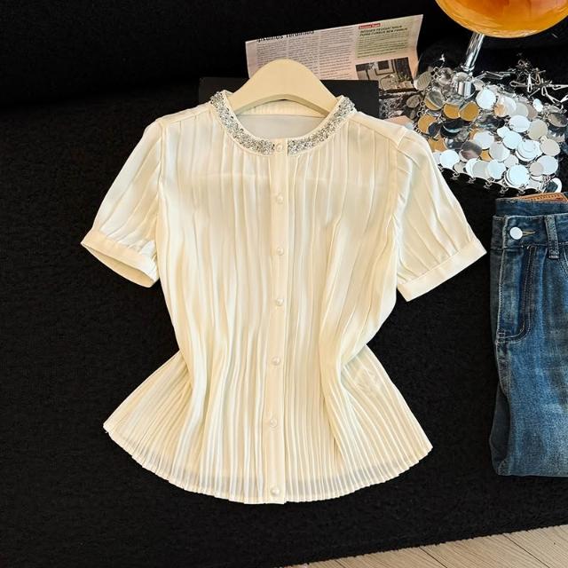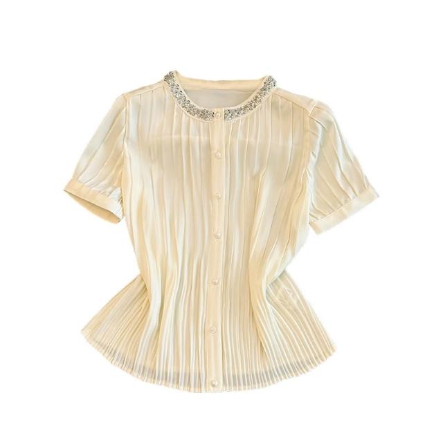 免運 2026新款韓系夏季法式立領釘珠短袖襯衫女高級感顯瘦百搭氣質上衣