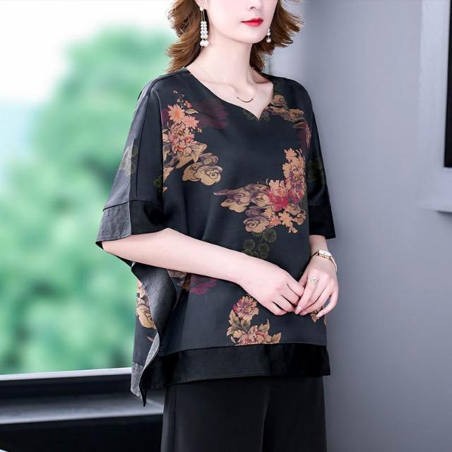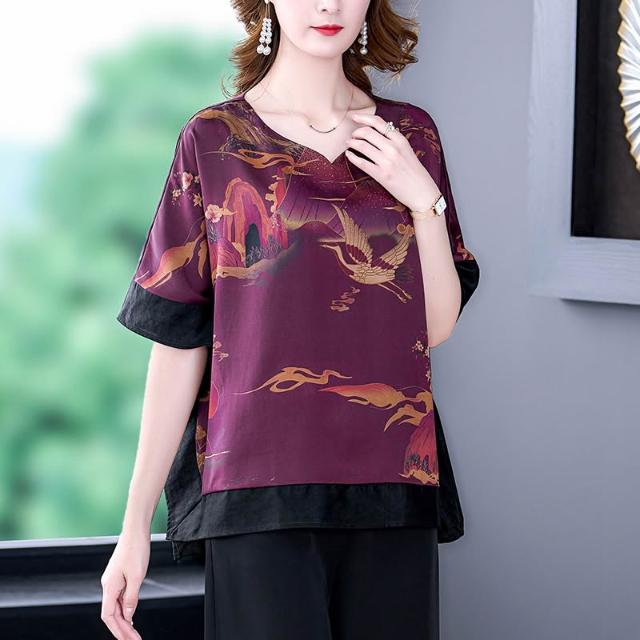 免運 重緞新中式真絲上衣女2026年夏季新款高端桑蠶絲貴婦人襯衫