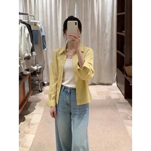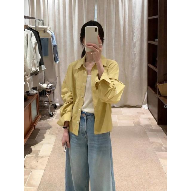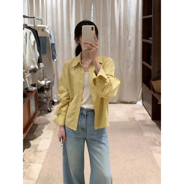免運 韓系黃色polo領翻領開衫襯衣上衣女春秋外搭小個子寬鬆襯衣外套薄