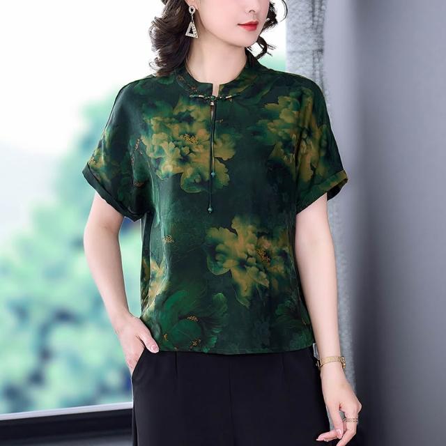 免運 新中式杭州絲綢旗袍上衣女2026年春夏新品高端真絲桑蠶絲媽媽襯衫