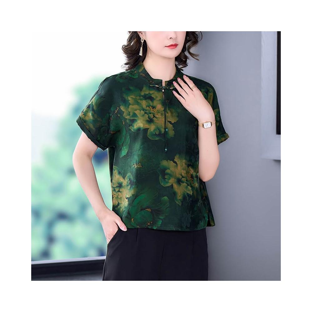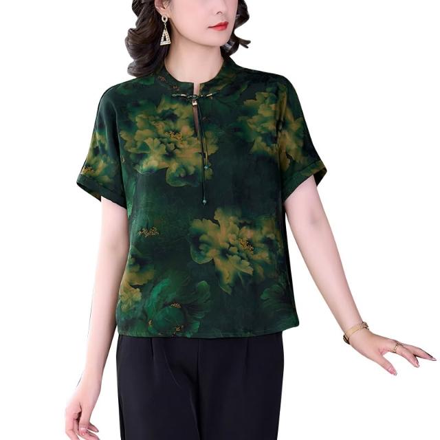免運 新中式杭州絲綢旗袍上衣女2026年春夏新品高端真絲桑蠶絲媽媽襯衫