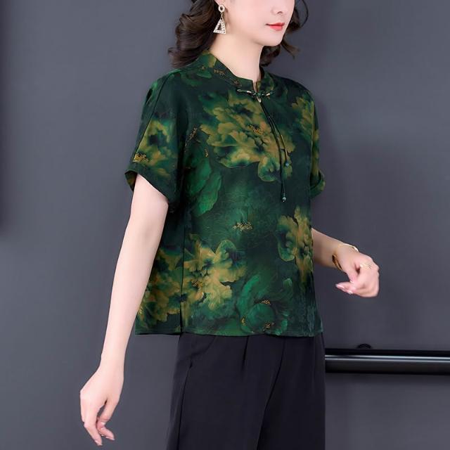 免運 新中式杭州絲綢旗袍上衣女2026年春夏新品高端真絲桑蠶絲媽媽襯衫