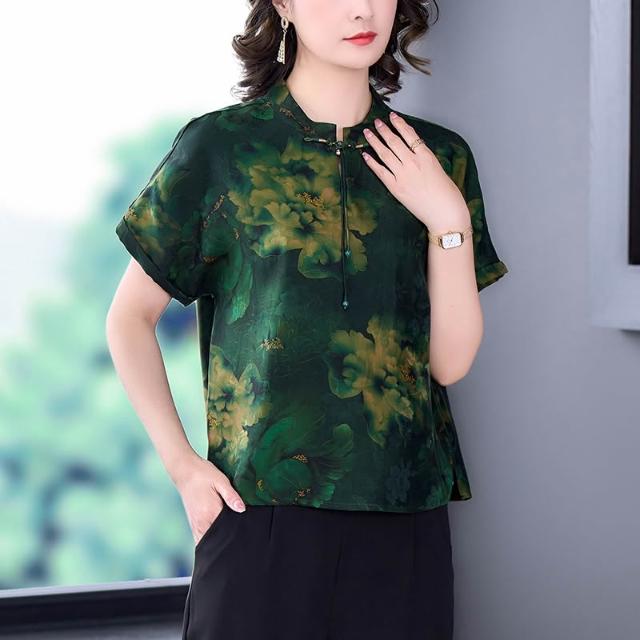 免運 新中式杭州絲綢旗袍上衣女2026年春夏新品高端真絲桑蠶絲媽媽襯衫